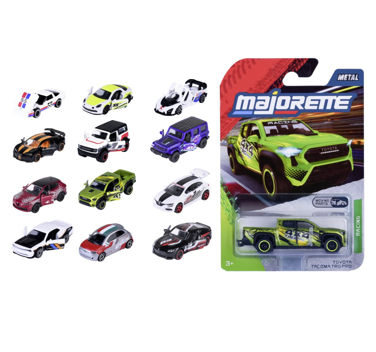 Kovové autíčko z řady Racing. Volnoběh, otevírací části. Měřítko 1:64, délka cca 7,5 cm. 12 druhů.