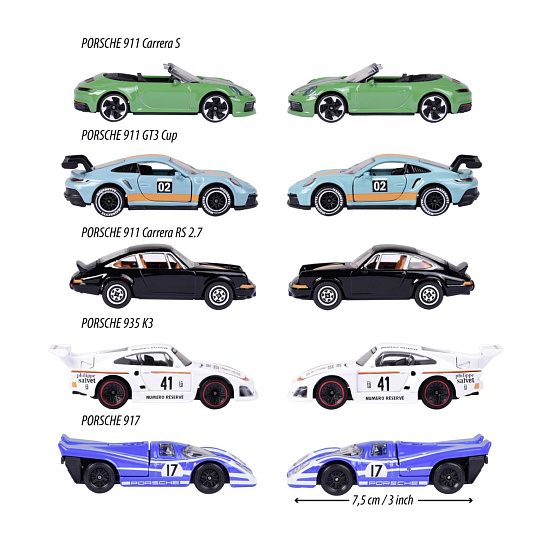 Dárková sada kovových sportovních autíček Porsche na volnoběh, délka 7,5 cm