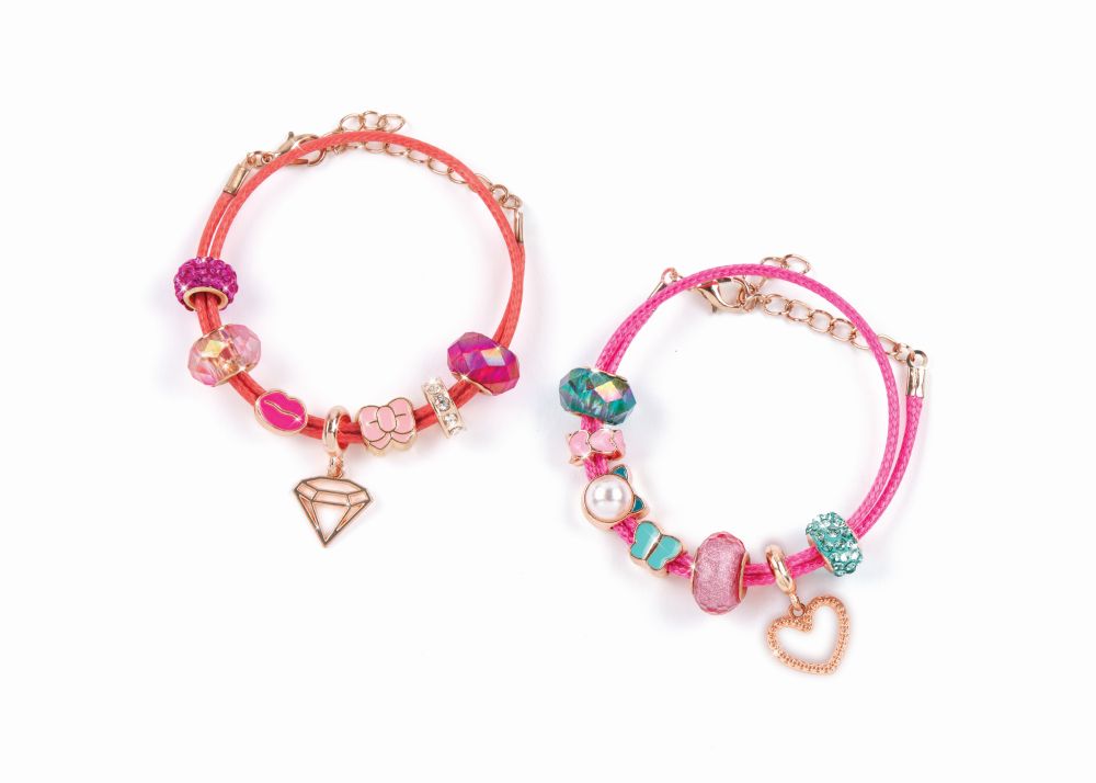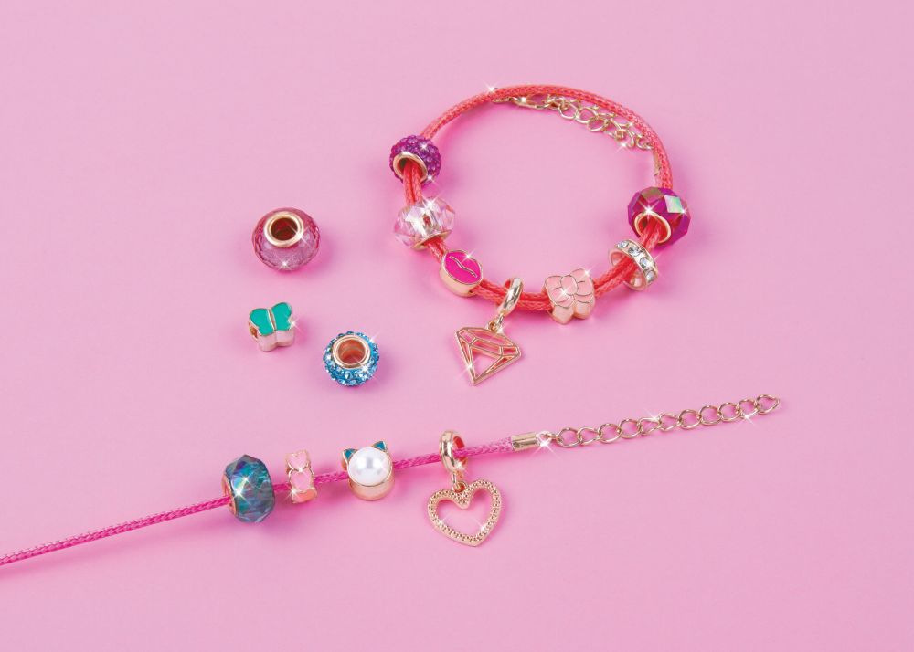 Sada obsahuje 2 náramky, korálky, přívěsky a instrukce. Vhodné od 8 let.
