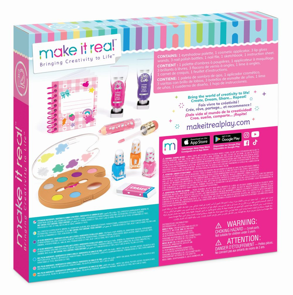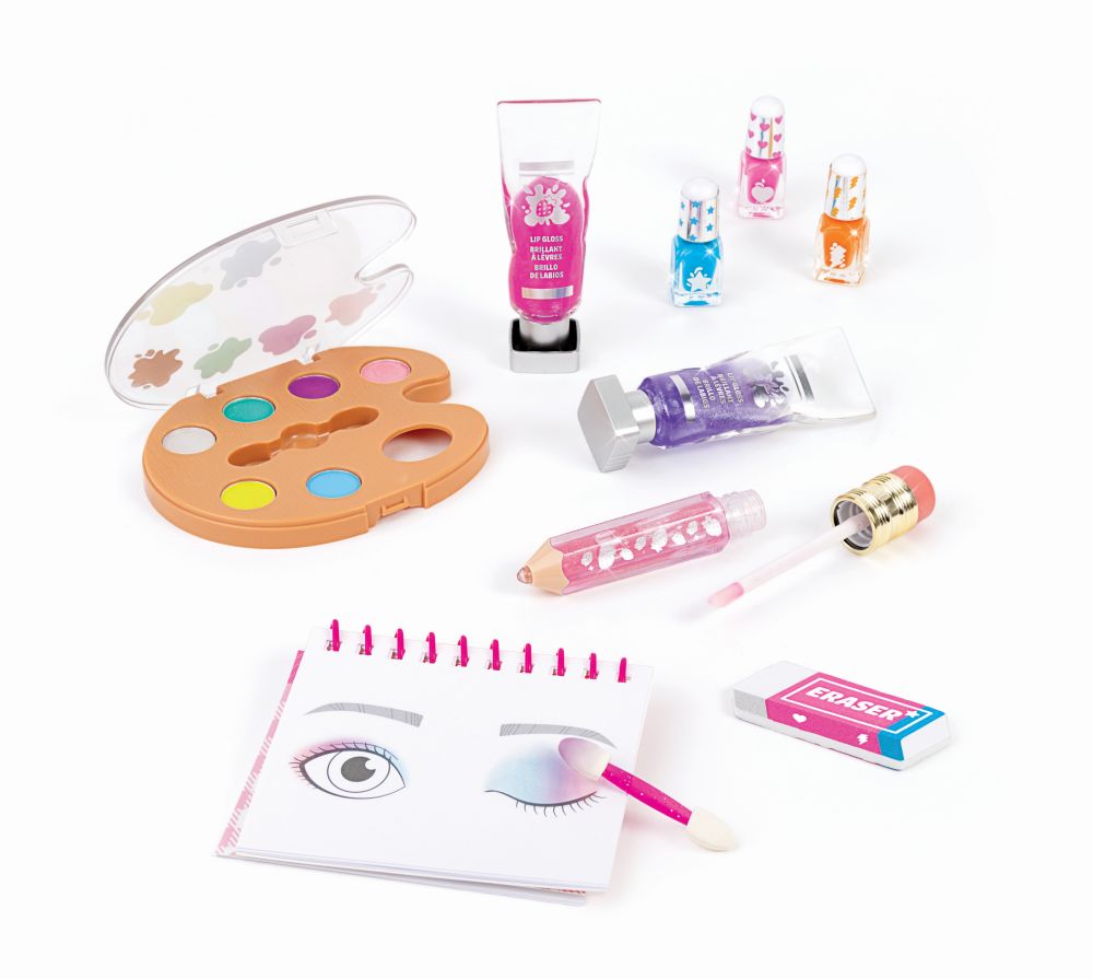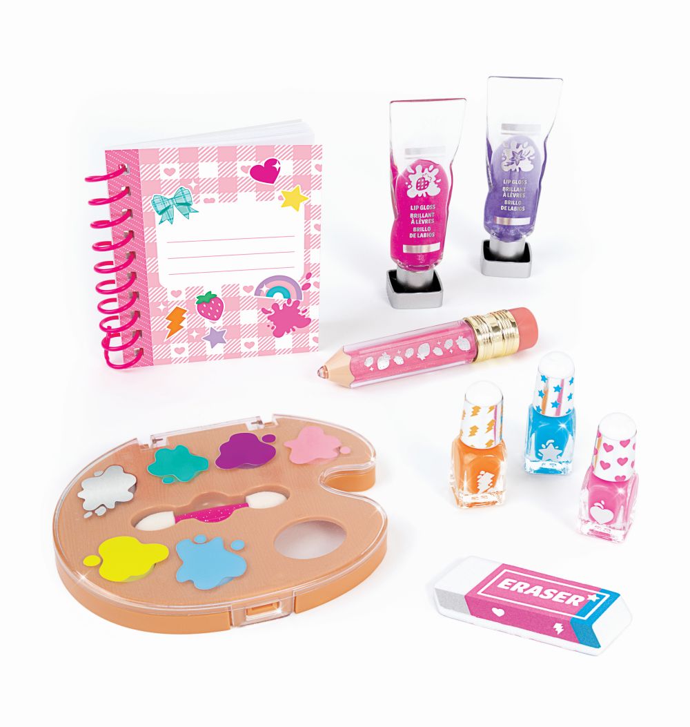 Vytvořte si make-up, který bude uměleckým dílem! Paleta očních stínů ve tvaru palety s barvami je ústředním bodem této sady s tématem výtvarných potřeb. Tato kompletní sada obsahuje lesk na rty, který vypadá jako tuba s barvou, a tužky pro umělce v srdci. Upravte si nehty třemi barvami laků na nehty a pilníkem na nehty ve tvaru gumy pro dokončení mistrovského díla. Před vdechnutím života si navrhněte make-up v přiloženém skicáři. Skvělý nápad na kreativní dárek pro děti, ať už na narozeninovou oslavu, svátek nebo jen tak pro zábavu. Povzbuďte sebevyjádření a nabídněte perfektní úvod do líčení a stylingu. Všechny make-up produkty jsou testovány na bezpečnost pro děti od 8 let.