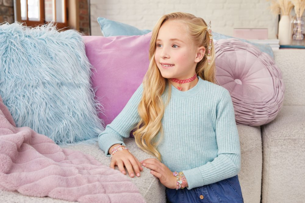 Vyrobte si 3 náramky a 2 náhrdelníky včetně super trendy elastického náhrdelníku ve stylu chocker. Sada obsahuje čirou elastickou šňůrku (4 m), 2 barevné šňůrky (2 m), 271 třpytivých korálků, 3 přívěšky a 1 klip do vlasů ve tvaru motýlka. Baleno v krabici. Vhodné pro děti od 8 let.