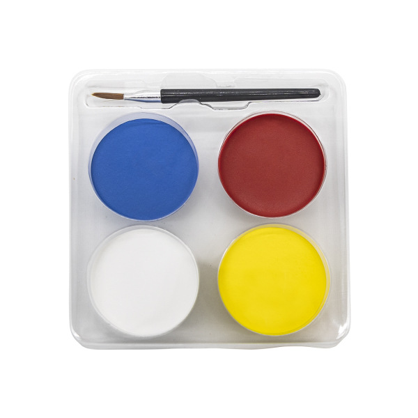 Ozdob si obličej a tělo barvičkami! Skvělá zábava pro tebe i tvé kamarády. Souprava barev na obličej obsahuje:1 štětec, 4 barvy x 3,5g (modrá, červená, bílá, žlutá). Smíchejte barvy s vodou pro hladkou a snadnou aplikaci. Make-up je vhodný pro cca. 28 použití a lze jej snadno odstranit z pokožky vodou. Pozor - výrobek může způsobit alergickou reakci. Barvu nejprve vyzkoušejte na kousku kůže.