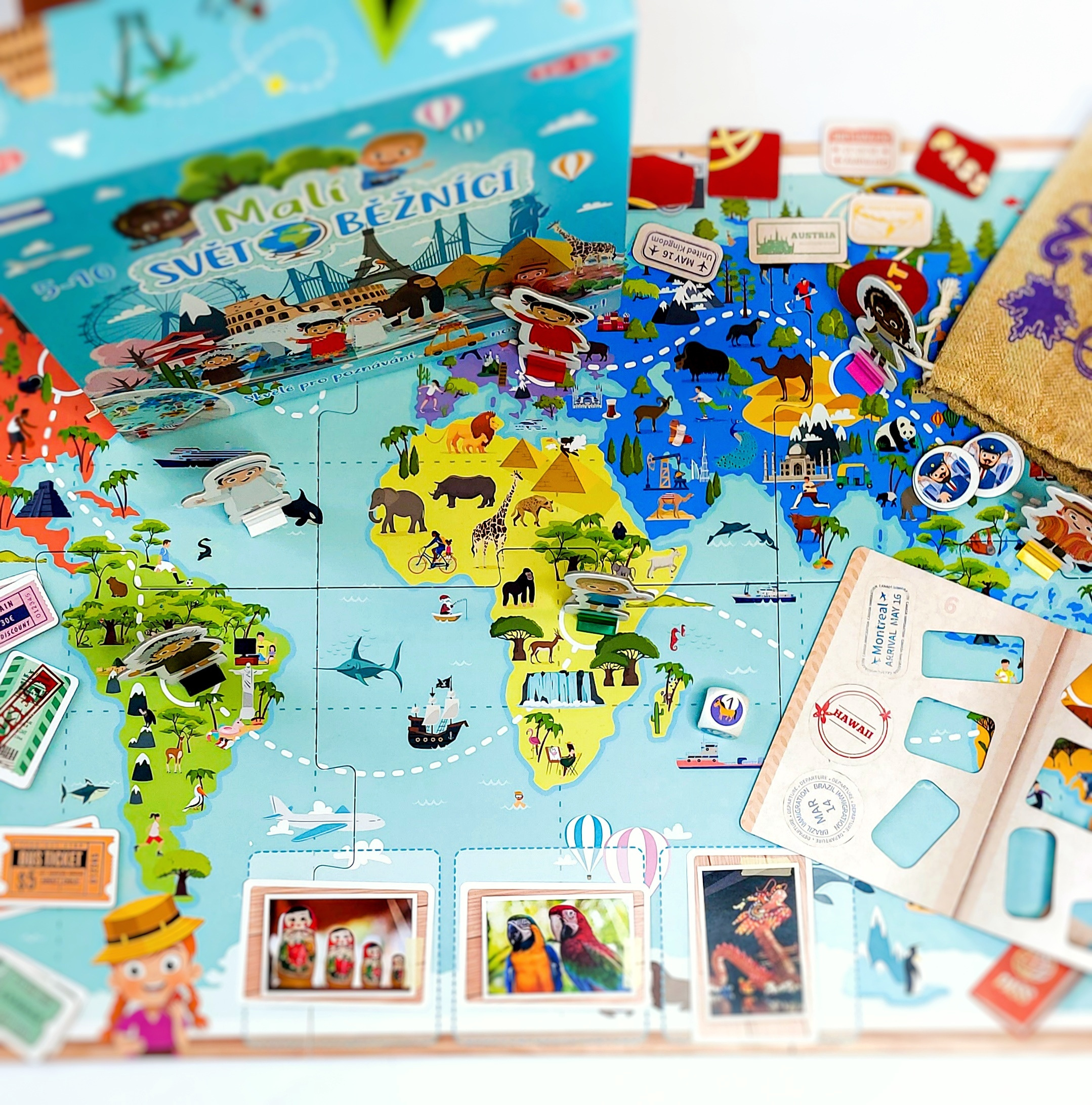 Najděte správné kontinenty a plňte úkoly, abyste získali známky do vašeho cestovního pasu.
