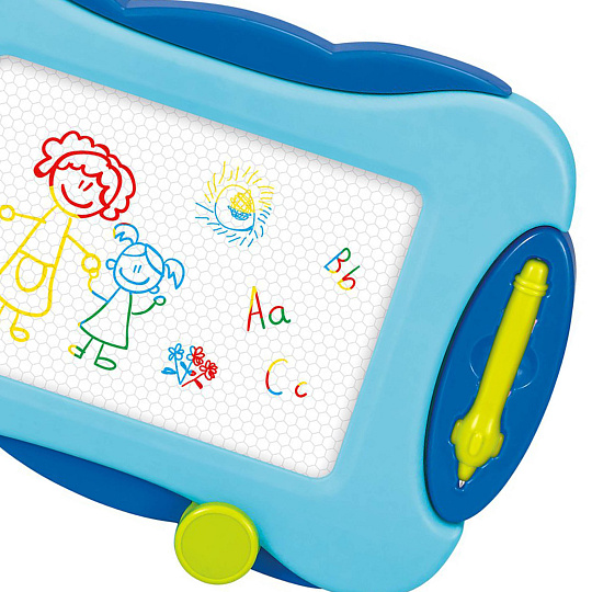 Magnetická kreslící tabulka je skvělou volbou pro rozvoj kreativity. Děti si mohou na tuto tabulku, s pomocí přiložené tužky, libovolně kreslit dle své fantazie. Ke smazání namalovaných obrázků slouží posuvná guma.
