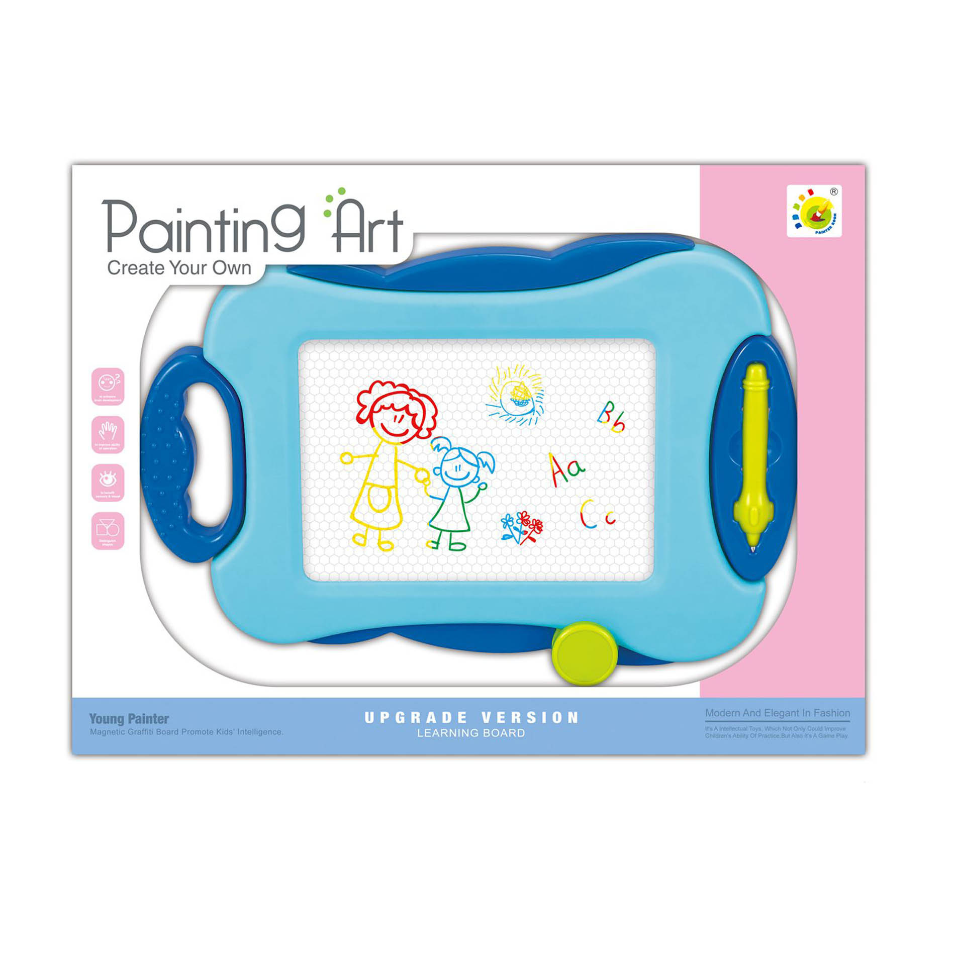 Magnetická kreslící tabulka je skvělou volbou pro rozvoj kreativity. Děti si mohou na tuto tabulku, s pomocí přiložené tužky, libovolně kreslit dle své fantazie. Ke smazání namalovaných obrázků slouží posuvná guma.