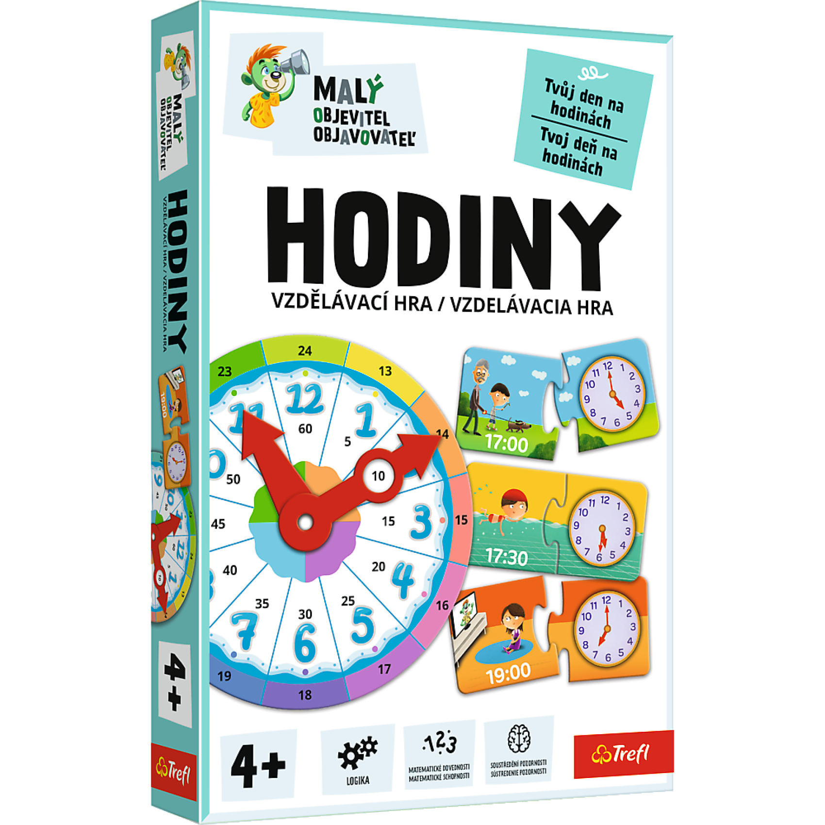 Malý objevitel - Hodiny je vzdělávací hra, ve které se děti učí určovat čas na hodinách v analogovém a digitálním formátu, a také přiřazovat různé činnosti k příslušným částem dne. Hra rozvíjí schopnost plánování a určování pořadí událostí. Počet hráčů: 1–4 Rozměr balení: 19 × 29 × 4 cm Vhodné pro děti od 4 let