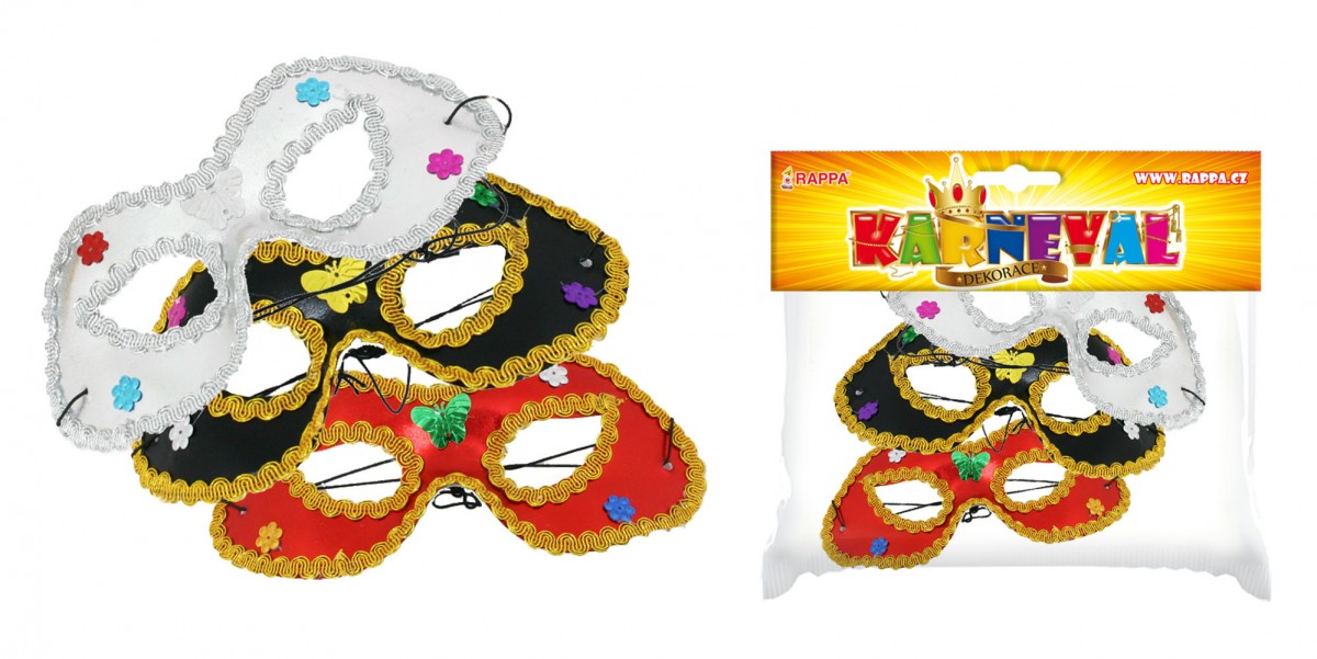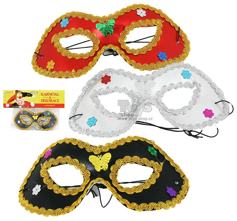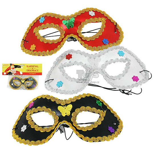 Nádherná škraboška, kterou upevníte na gumičku je dekorována metalickými ozdobami v podobě kytiček a motýlků. Stačí si ji nasadit a hned budete nepřehlédnutelná! K výběru ze tří barev.