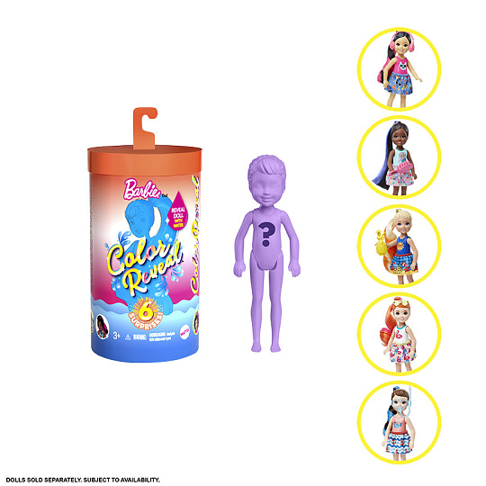 Tuto kolekci panenek Chelsea™ Color Reveal si zajisté zamilují všechny malé milovnice překvapení. V každém balení na tebe čeká panenka a doplňky, avšak vzhled panenky zůstane překvapením až do posledního okamžiku. Jsi připravená zjistit, jak tvá panenka vypadá? Stačí použít trochu teplé vody na panenku a otevřít neprůhledné sáčky, v kterých najdeš doplňky.