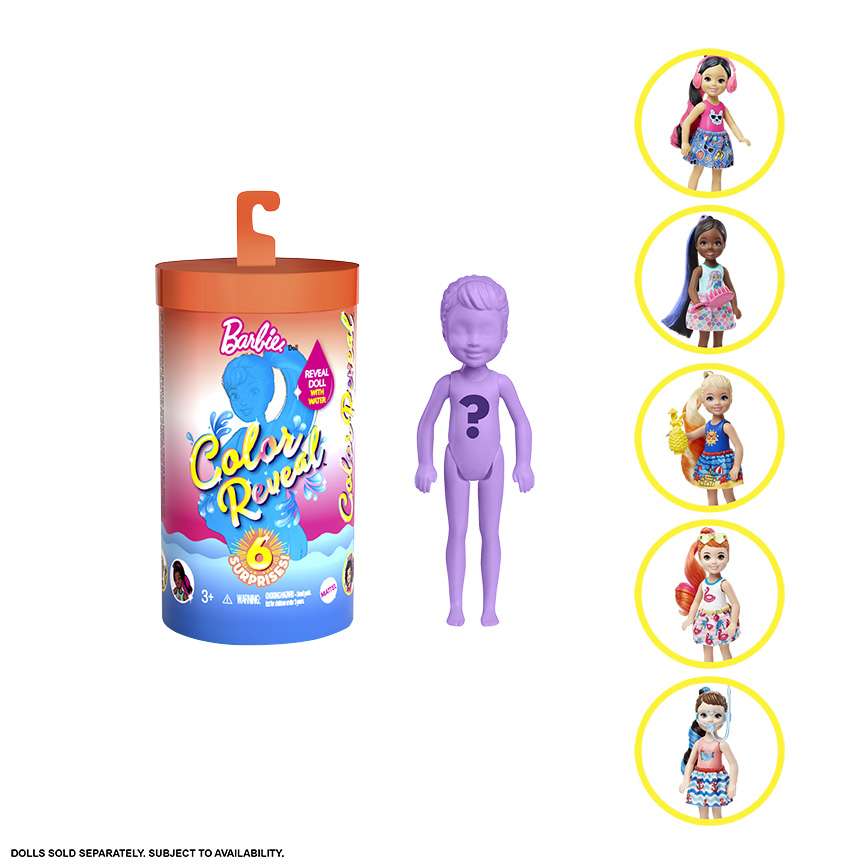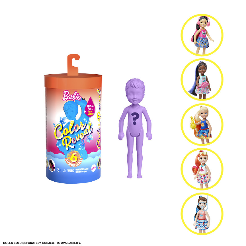 Tuto kolekci panenek Chelsea™ Color Reveal si zajisté zamilují všechny malé milovnice překvapení. V každém balení na tebe čeká panenka a doplňky, avšak vzhled panenky zůstane překvapením až do posledního okamžiku. Jsi připravená zjistit, jak tvá panenka vypadá? Stačí použít trochu teplé vody na panenku a otevřít neprůhledné sáčky, v kterých najdeš doplňky.