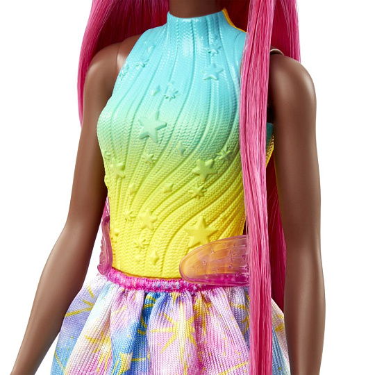 Panenky Barbie™ Kouzelná princezna ze světa Dreamtopia inspirují nekonečné vyprávění ve sladké fantazii, která je vhodná pro královské dobrodružství! Každá princezna má třpytivý ombré živůtek a princeznovskou sukni s barevným květinovým potiskem a tylovým překrytím. Fantastický vzhled každé panenky doplňuje královská čelenka. Prodávají se