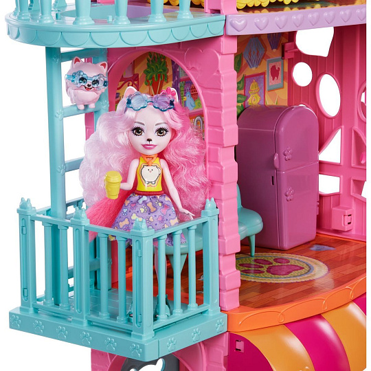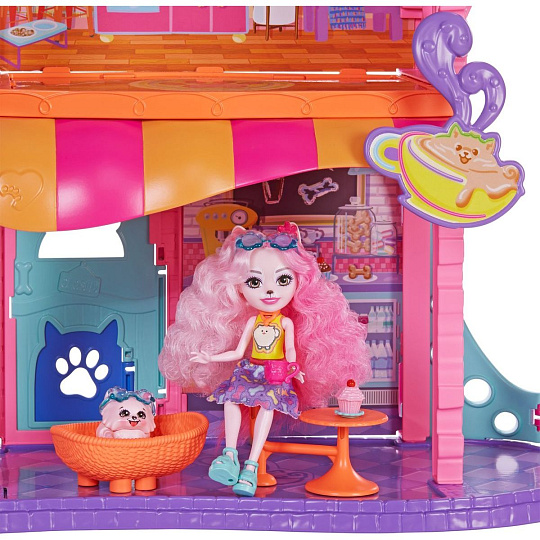 Herní set Enchantimals™ Byteček ve městě (70 cm) je ideálním místem pro posezení po náročném dni. Díky 3 patrům, 6 hracím plochám a s více než 15 doplňky je tento set plný nekonečného hraní. Součástí je také panenka Palmer Pomořanská (15 cm) a její nejlepší zvířecí mazlíček, se kterými si děti můžou přehrávat množství příběhů.