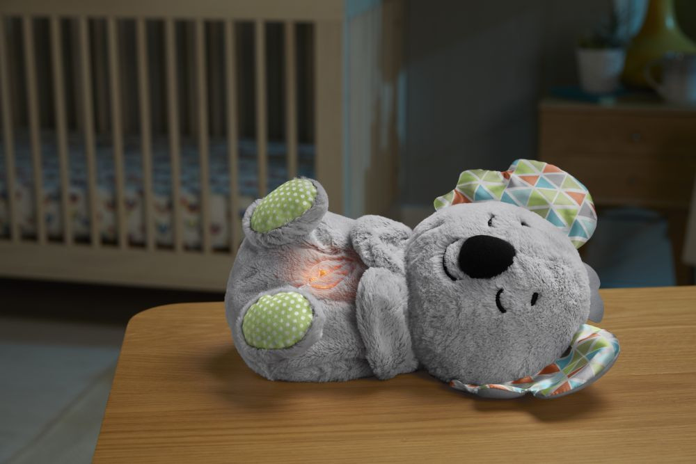 S Fisher-Price® Uklidňující koala s melodiemi se vaše miminko může oddávat příjemnému mazlení. Tato mazlivá plyšová hračka s melodiemi má měkké svítící bříško, které se pohybuje nahoru a dolů v uklidňujícím rytmu, jako kdyby doopravdy dýchala. Průběh uspávání si můžete přizpůsobit nastavením časovačů, hudby nebo zvuků přírody a barevných světel. Tato uklidňující koala s melodiemi pro kojence s řadou různých povrchů, které může vaše miminko ručičkami prozkoumávat, lze prát v pračce.