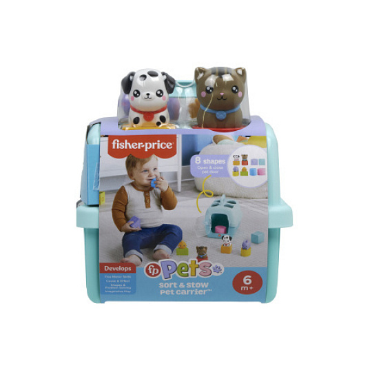 Malí milovníci domácích mazlíčků si s hračkou na třídění tvarů Vkládačka se zvířátky od Fisher-Price® užijí spoustu zábavy. Tato dětská hračka obsahuje roztomilé kostky různých tvarů s motivy domácích mazlíčků, které mohou děti třídit do odpovídajících otvorů v přenosce pro zvířátka. Vyprázdněte přenosku dvířky a začněte znovu! Tato hračka pomáhá při hře rozvíjet jemnou motoriku a schopnost řešit problémy.