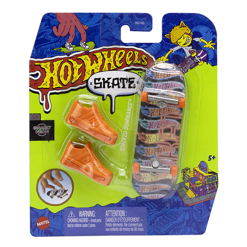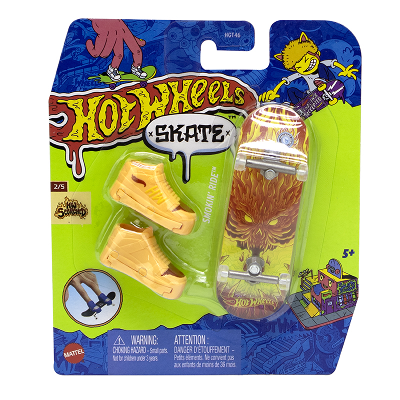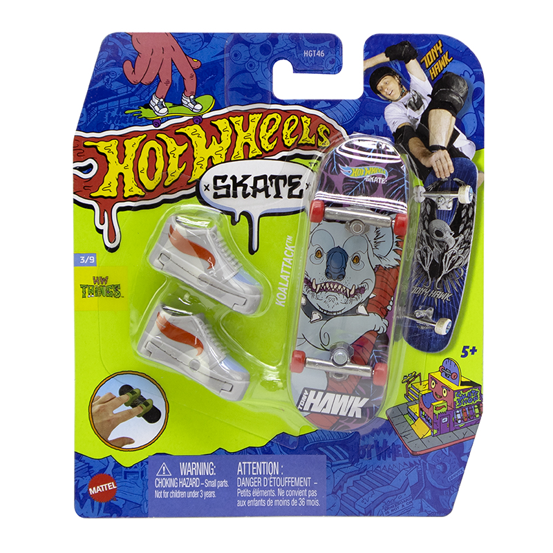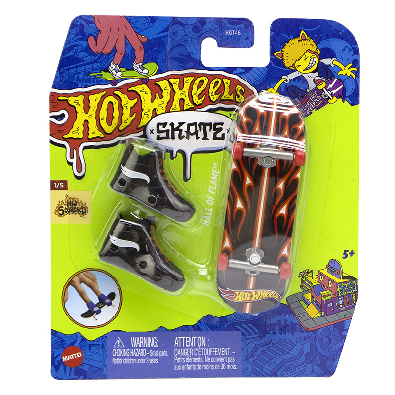 Vrhni se do akce s touto skvělou novinkou Fingerboard a boty od Hot Wheels®. Hot Wheels® a legenda skateboardingu Tony Hawk se spojili, aby vytvořili epickou kolekci fingerboardů, která je jako stvořená pro skvělé kaskadérské kousky a špičkové pohyby. Každý kompletně sestavený fingerboard Hot Wheels® je dodáván s párem stylových, odnímatelných skate bot, které jsou navrženy tak, aby udržely konečky prstů na místě, když se učíte shredovat a dělat ollie jako profesionál. Každý fingerboard má jedinečný a cool design, že je děti budou chtít sesbírat všechny. Každý se prodává samostatně v závislosti na dostupnosti. Barvy a provedení se mohou lišit.