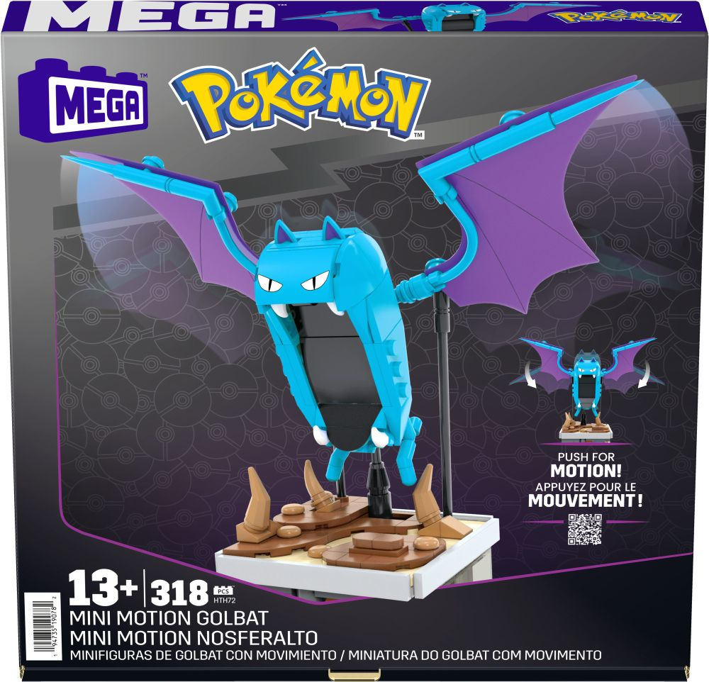 Pohyblivé stavební sety Pokémonů jsou nyní k dispozici v podobě miniatur. Postavte model a stiskněte skryté tlačítko, abyste viděli, jak Golbat mává křídly. Tento model je vysoký přibližně 13 cm.
