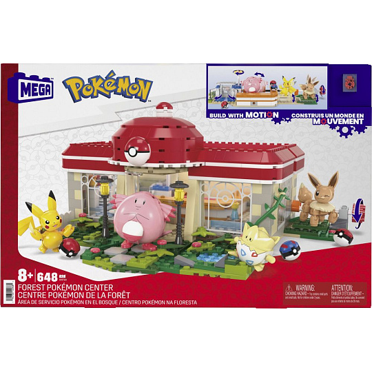 Vítejte v centru Pokémonů! Toto ikonické místo si nyní můžete postavit jako set se čtyřmi známými pokémony: Pikachu, Chansey, Eevee a Togepi. Otočením kliky uvidíte Chanseyho, jak tančí, Pikachu a Eevee, jak si hrají na schovávanou, a Togepiho, jak otevírá dveře.