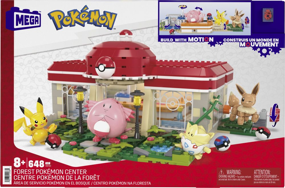 Vítejte v centru Pokémonů! Toto ikonické místo si nyní můžete postavit jako set se čtyřmi známými pokémony: Pikachu, Chansey, Eevee a Togepi. Otočením kliky uvidíte Chanseyho, jak tančí, Pikachu a Eevee, jak si hrají na schovávanou, a Togepiho, jak otevírá dveře.