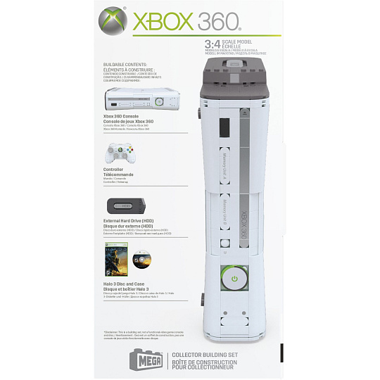 Tato sběratelská stavebnice MEGA je inspirována nejznámější herní konzolí své doby a oslavuje odkaz konzole Xbox 360. Vraťte se do hry s plně sestavitelnou, svítící konzolí a ovladačem. Konzole se otevře a odhalí diskovou mechaniku (a další tajné ukryté informace) vložte dovnitř disk s motivem Halo 3 a aktivujte základní desku.