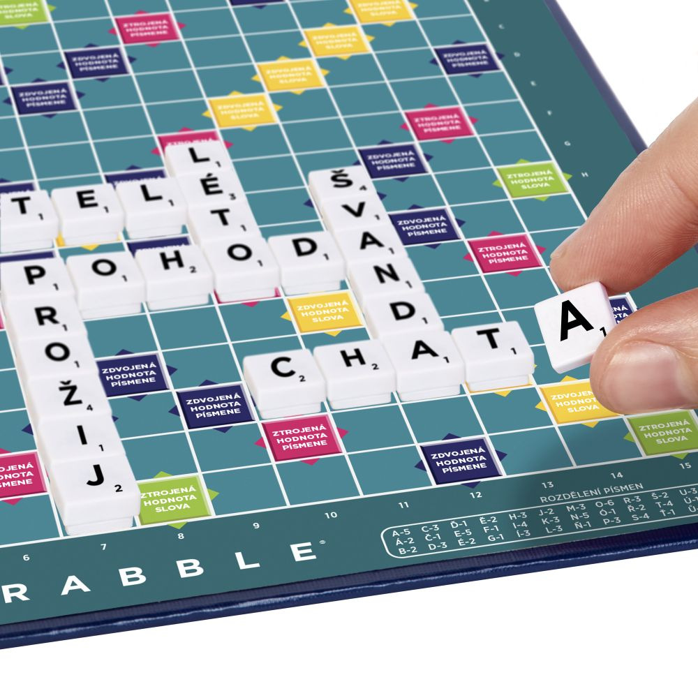 Strategická hra Scrabble™ nyní může cestovat s vámi! Ať už hrajete ve vlaku, v letadle nebo na vrcholcích hor, tato celosvětově oblíbená hra vás doprovodí kamkoli. Scrabble™ cestovní obsahuje klasickou hrací desku s mřížkou, která udržuje hrací kameny na svém místě - stačí přikládat jednotlivá písmena, když hláskujete další slovo. Získejte co nejvíce bodů skládáním slov z písmen na kamenech. Pak sledujte, jak se vaši protihráči tváří, když položíte kámen s daným písmenem na trojnásobné skóre slov! Kompaktní a přenosné, můžete být na cestách a hra se pohybuje s vámi! Hrát mohou 2-4 hráči. Součástí je hrací deska, 4 stojánky, 100 hracích kamenů s písmeny, sáček na hrací kameny a pravidla. Barvy a provedení se mohou lišit. Věk od 10 let.