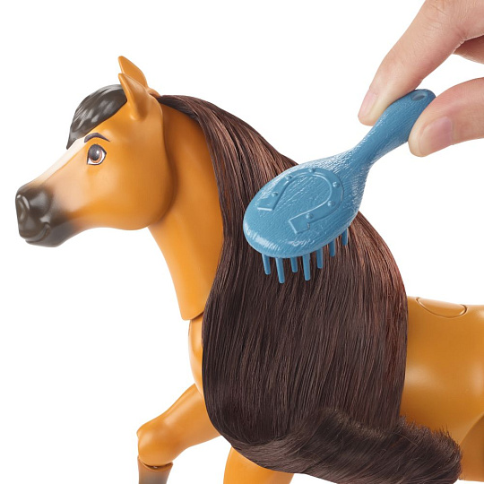 Staňte se součástí přátelství, statečnosti a dobrodružství z animovaného filmu Spirit Koník s doplňky společnosti DreamWorks! Tento kůň Spirit (20,3 cm) v sobě nese veškeré dění a napínavé okamžiky z filmu, a navíc má funkci realistické chůze (koně umístíte na povrch a zmáčknete tlačítko), zvuky řehtání a krásnou dlouhou hřívu a oháňku. Koni Spirit nechybí plůtek a balík sena ke skákání, kartáč k česání a jablko jako svačinka! Děti si zamilují všestrannost tohoto krásného koně inspirovaného filmem, se kterým si můžou přehrávat různé akce a upravovat mu hřívu! Barvy a vzhled se mohou lišit. Ideální dárek pro děti od 3 let.