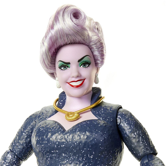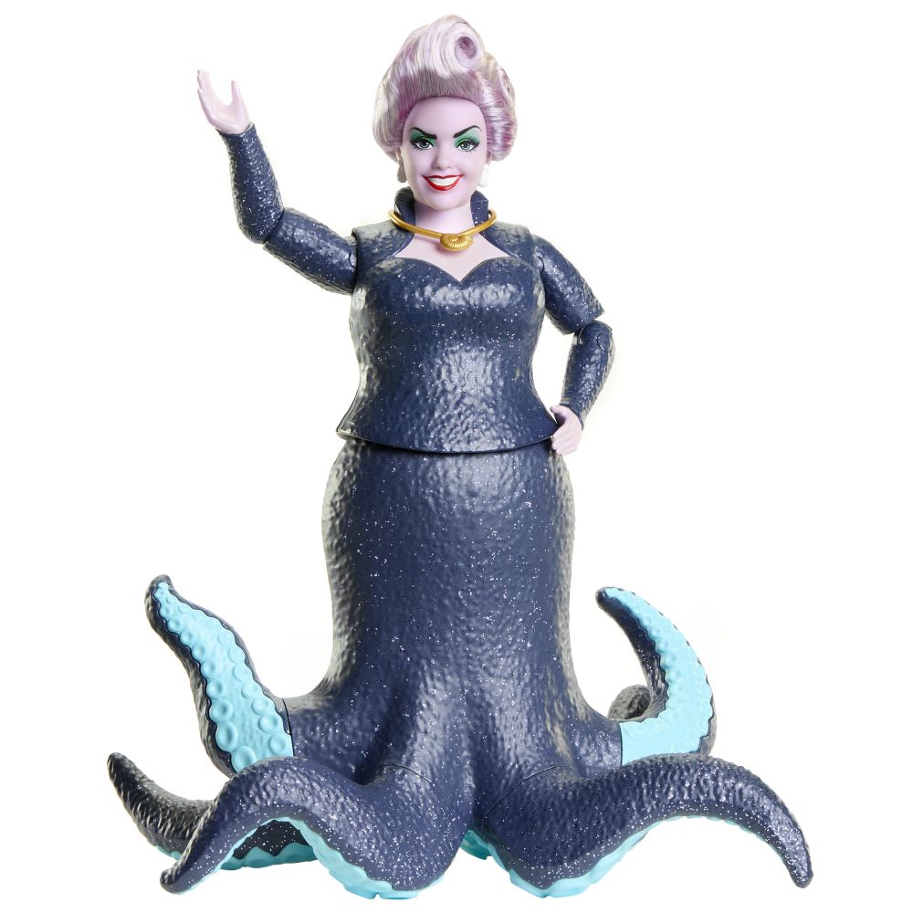 Prozkoumejte kouzelný svět Malé mořské víly novým způsobem! Panenka zlá mořská čarodějnice je inspirovaná hraným filmem od společnosti Disney Malá mořská víla. Panenka má obleček z měkkého materiálu s potiskem, odnímatelný náhrdelník, náušnice a rafinovaně tvarovaná třpytivá chapadla s modrou barvou na spodní straně.
