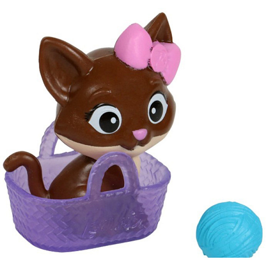 Mattel Barbie figurky mazlíčků 8x11,5 cm, balení obsahuje úžasnou figurku kočičky v košíčku a klubíčko, krásná originální zvířátka, lze použít jako doplněk pro panenky Barbie nebo sbírat jako samostatné figurky