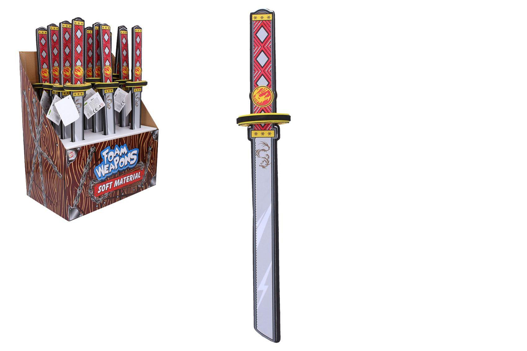Meč katana, pěnový. Délka 53 cm. Display box - 12 ks.