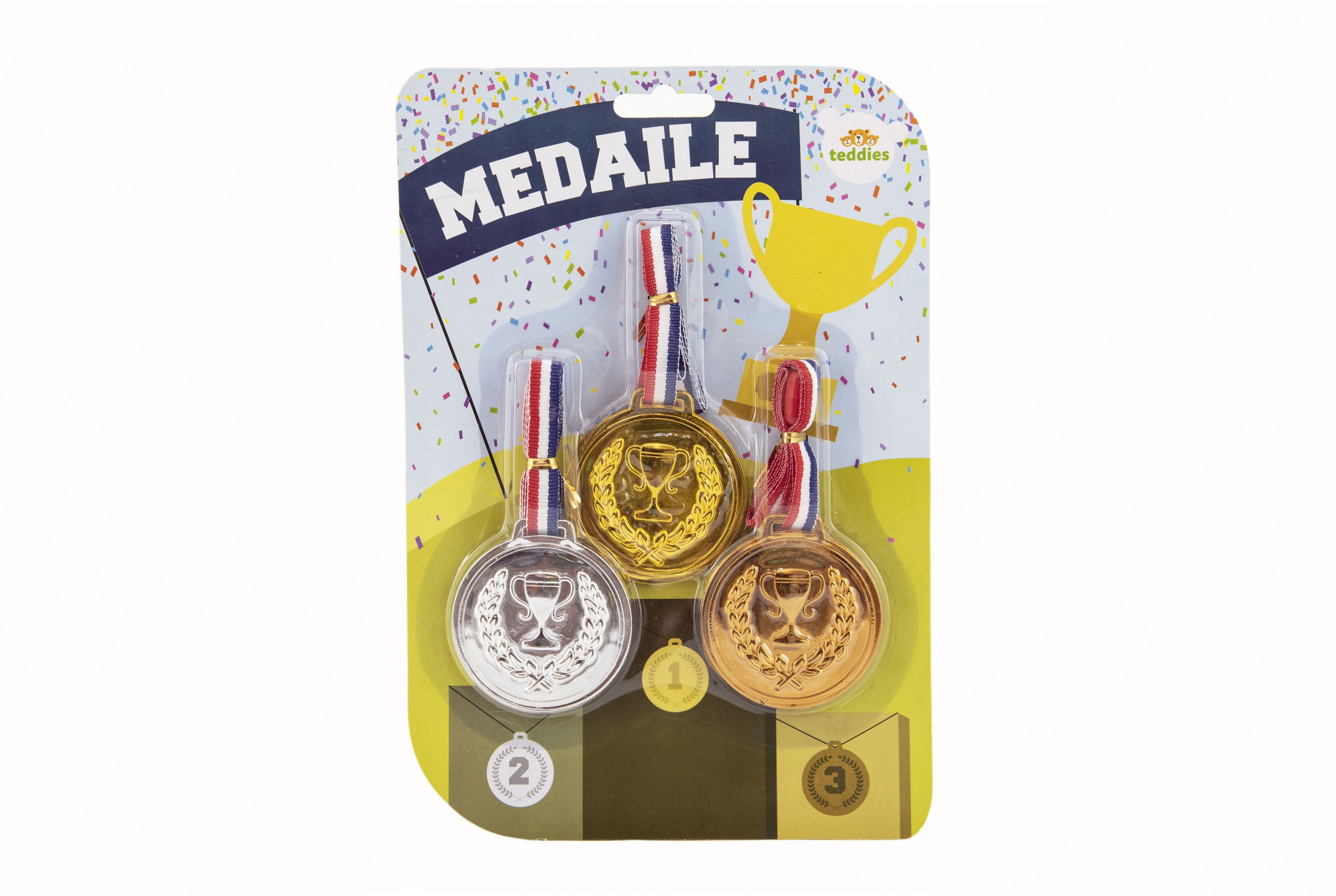 Medaile pro všechny malé vítěze. Sada tří medailí se stužkou. Děti mohou soutěžit v různých disciplínách s nadějí, že se postaví na stupně vítězů a budou odměněni medailemi. Zajistěte dětem medaile do soutěží! Vhodné pro děti od 3 let.