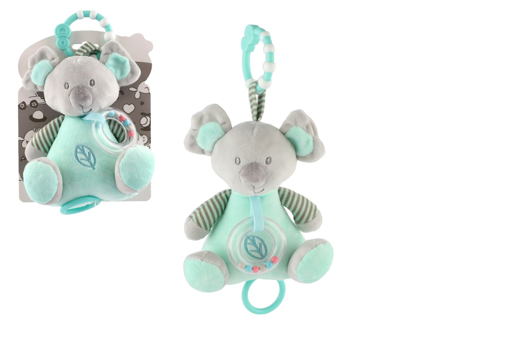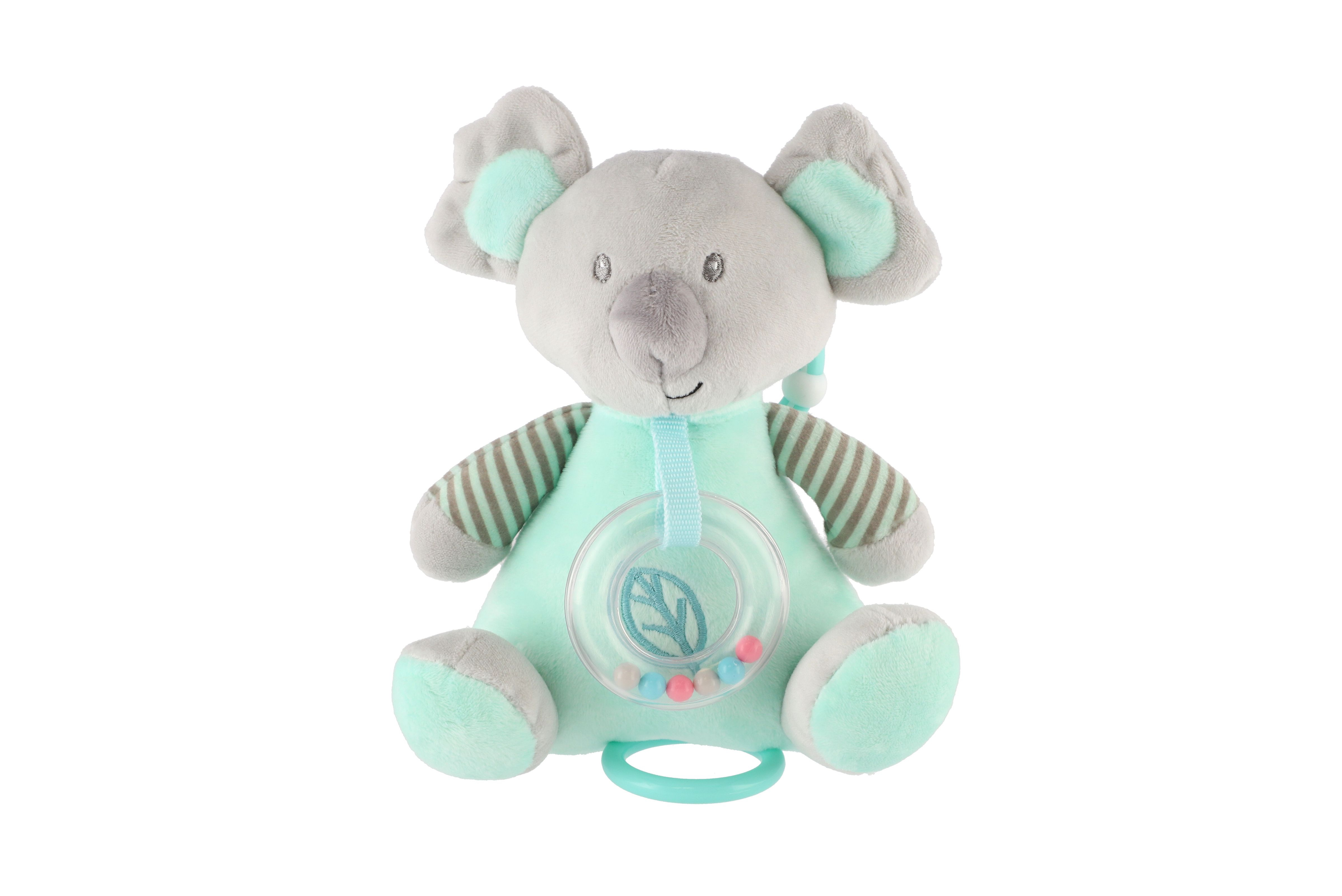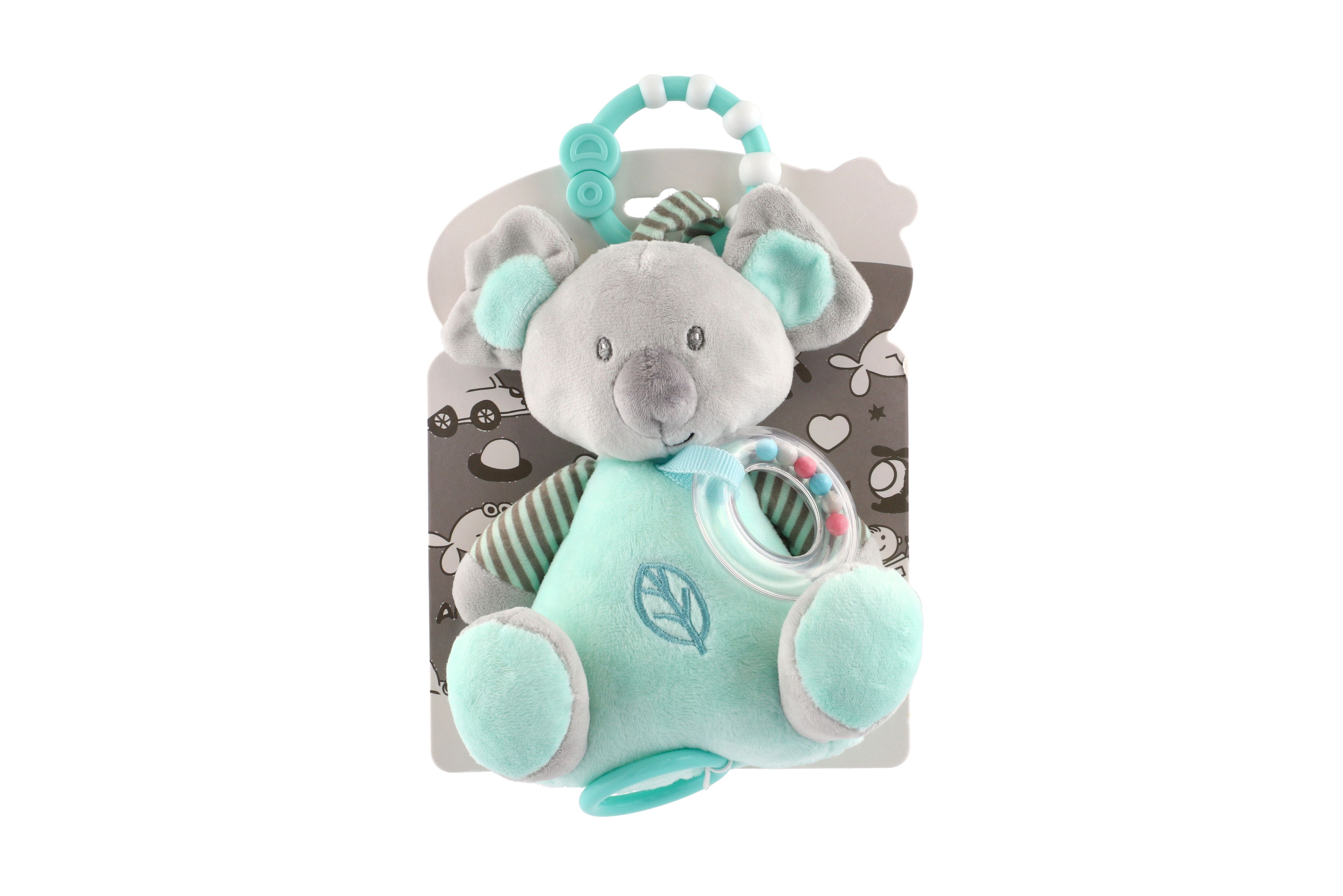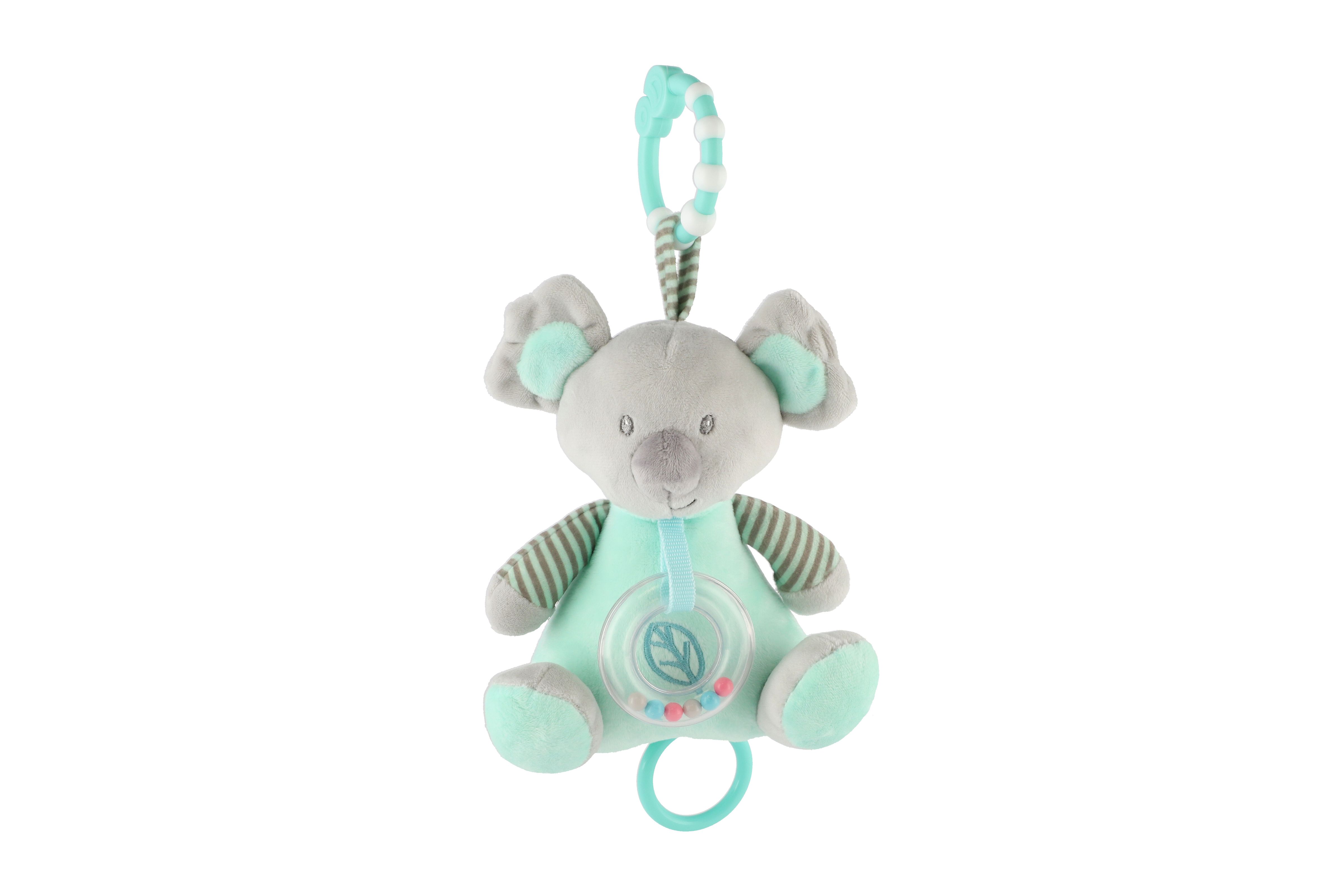 Medvěd koala chrastítko plyš 19cm závěs na post./koč. nat. hrací strojek zelený na kartě v sáčku 0+