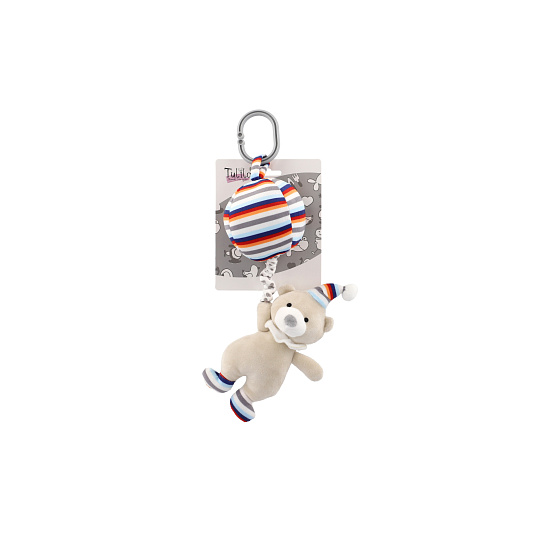 Medvěd s balónem plyš 30cm závěs na postýlku/kočárek nat. hrací strojek béžový na kartě v sáčku 0+