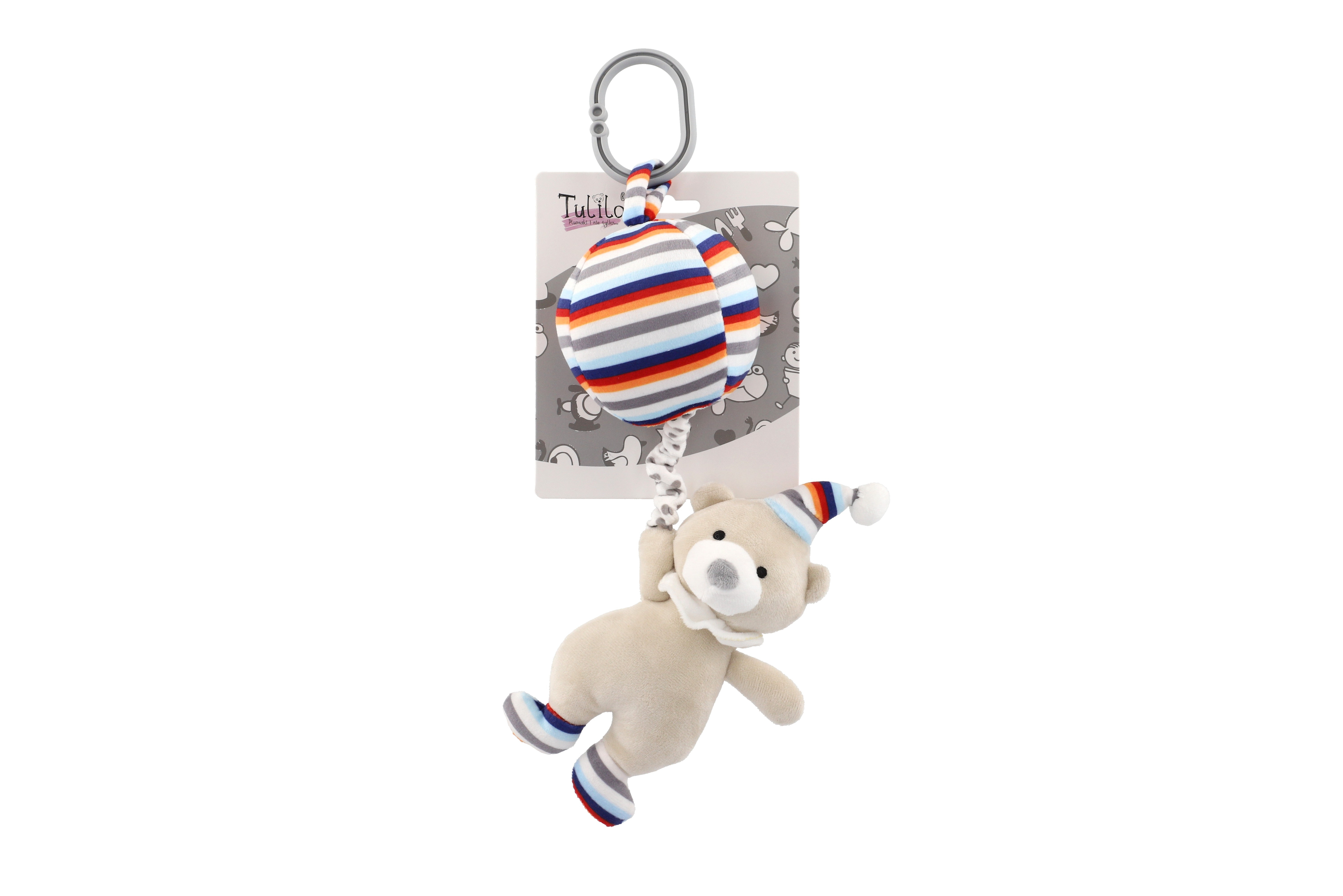 Roztomilý natahovací medvídek s balónem hraje příjemnou melodii, která miminko uklidní a pomáhá mu při usínání. Hračku lze zavěsit za pomocí klipu na postýlku nebo kočárek. Hrací strojek je zabudovaný uvnitř balńu, zatáhnete za medvídka a tím melodii spustíte. Rozměr hračky: 30 cm Vhodné pro děti od narození