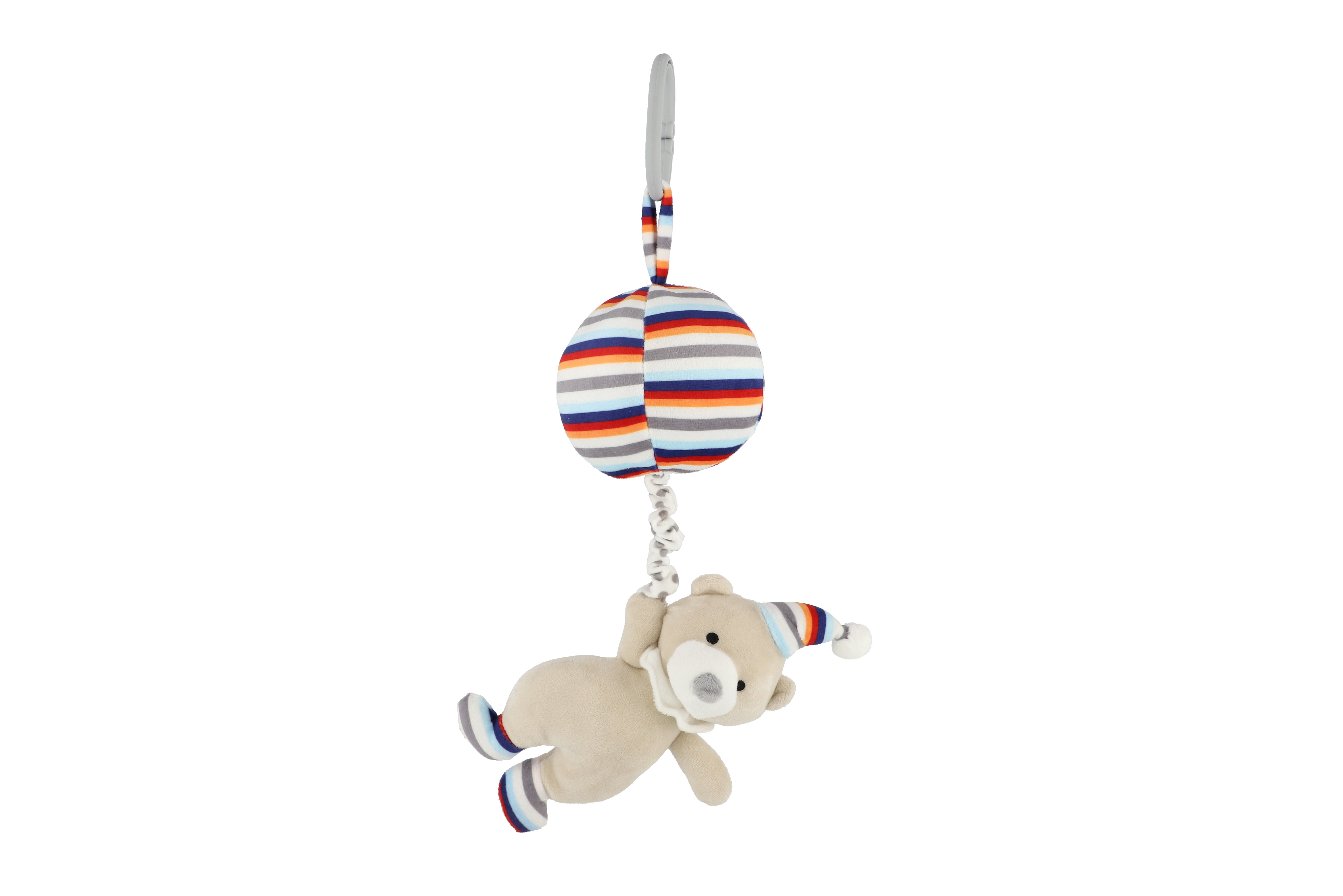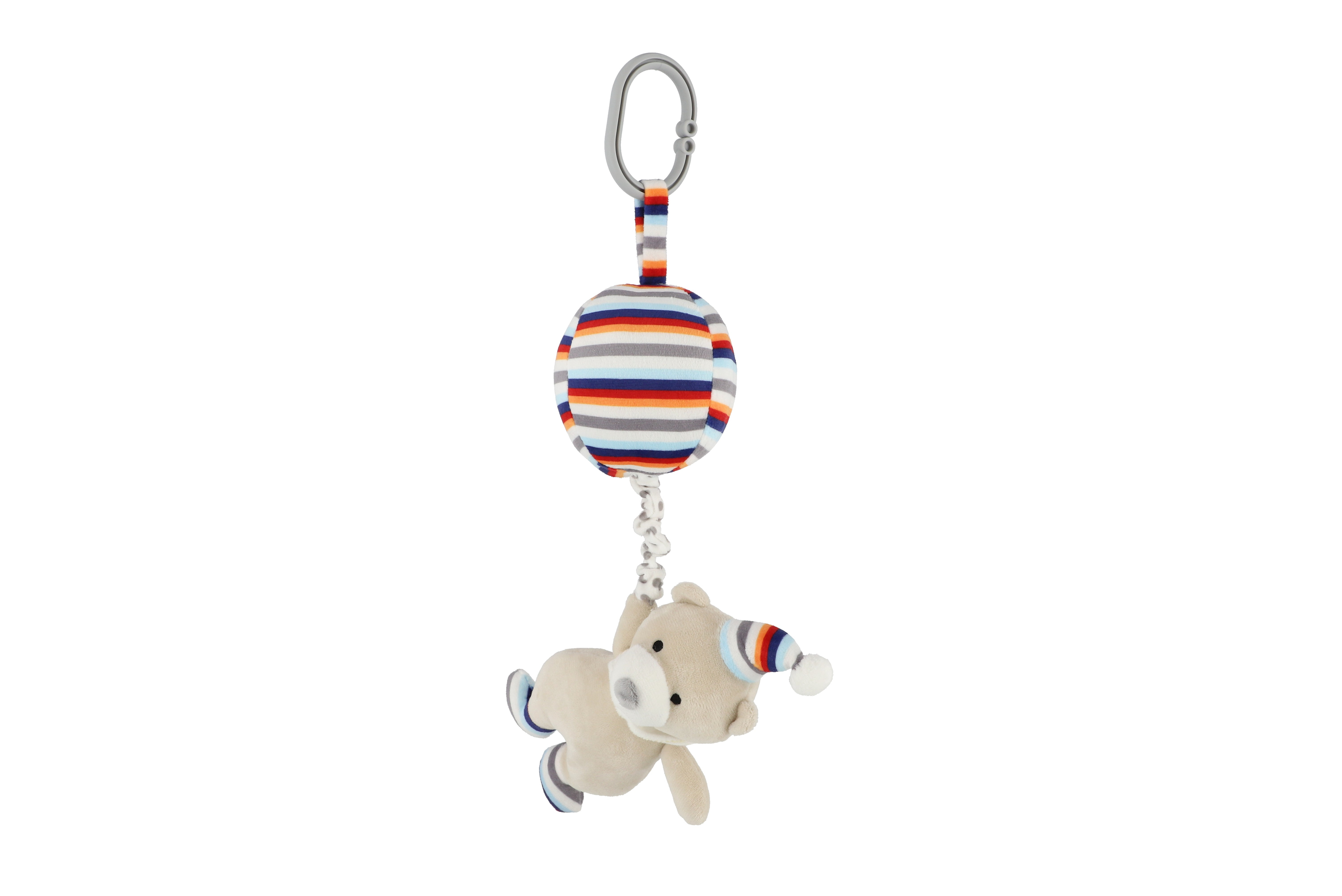 Medvěd s balónem plyš 30cm závěs na postýlku/kočárek nat. hrací strojek béžový na kartě v sáčku 0+