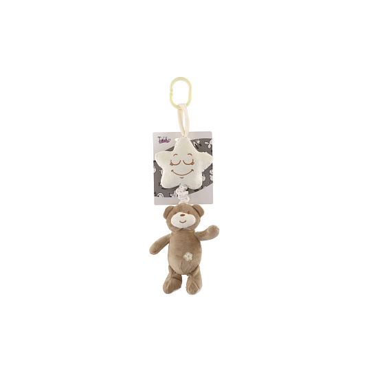 Medvěd s hvězdou plyš závěs na postýlku/kočárek natahovací hrací strojek 36cm na kartě v sáčku 0+