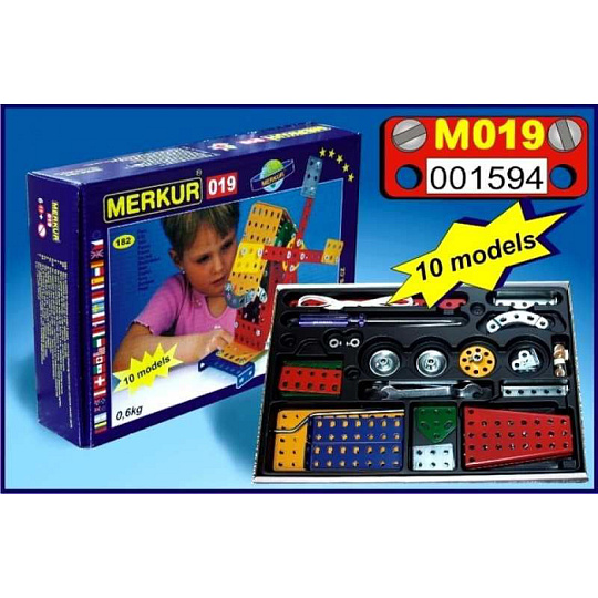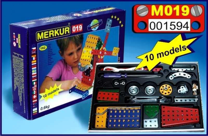 Ze stavebnice Merkur 019 Mlýn je možné dle návodu sestavit až 10 různých modelů pouťových atrakcí. Malí konstruktéři mohou sestavit i model dle svých představ, fantazii se meze nekladou. Stavebnice obsahuje 182 dílků. Vhodné i pro děti, které s Merkurem začínají. Se sestavenými modely si lze hrát, jsou velmi odolné.