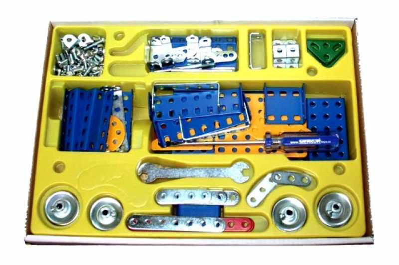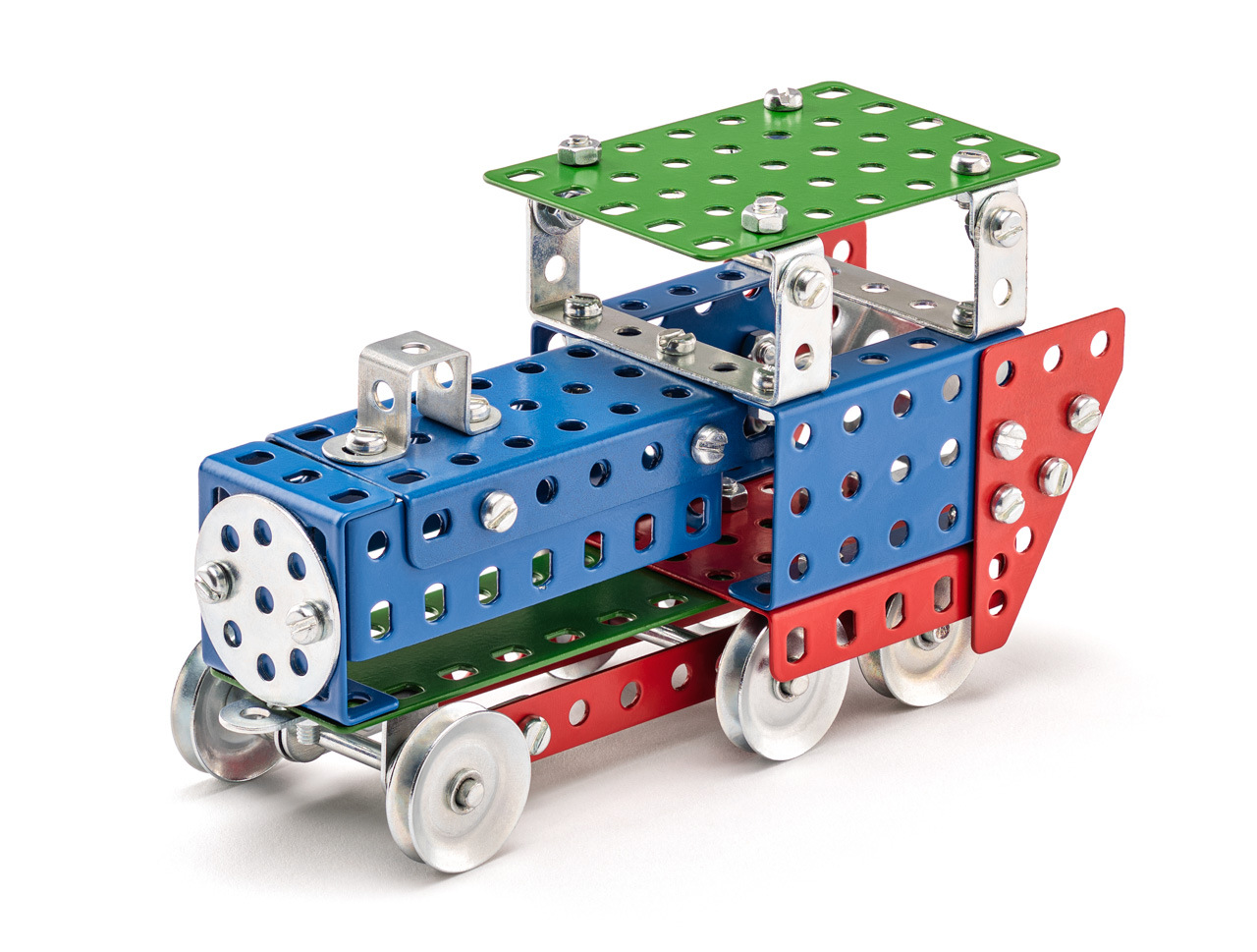 Klasická jednovrstvá stavebnice Merkur 32 – železniční modely. Stavebnice obsahuje součástky potřebné pro stavbu modelů vlaků. Součástí stavebnice je návodová knížka s návodem na stavbu 10 různých modelů. Tato jedinečná sada je ideálním nástrojem pro rozvoj technických dovedností a představivosti dětí. Stavebnice obsahuje kvalitní kovové díly, které se snadno spojují šroubky, což podporuje rozvoj jemné motoriky, logického myšlení a soustředění. Počet dílků: 300. Úroveň Merkur obtížnosti: 3. Barvy, velikost a vzhled výrobku se mohou lišit oproti uvedeným fotografiím. Baleno v krabičce. Rozměry balení: 26 x 36 x 3 cm. Nevhodné pro děti mladší 3 let. Věk: 5+