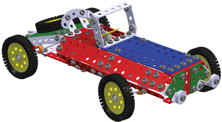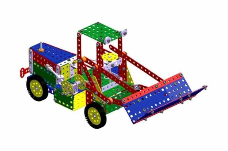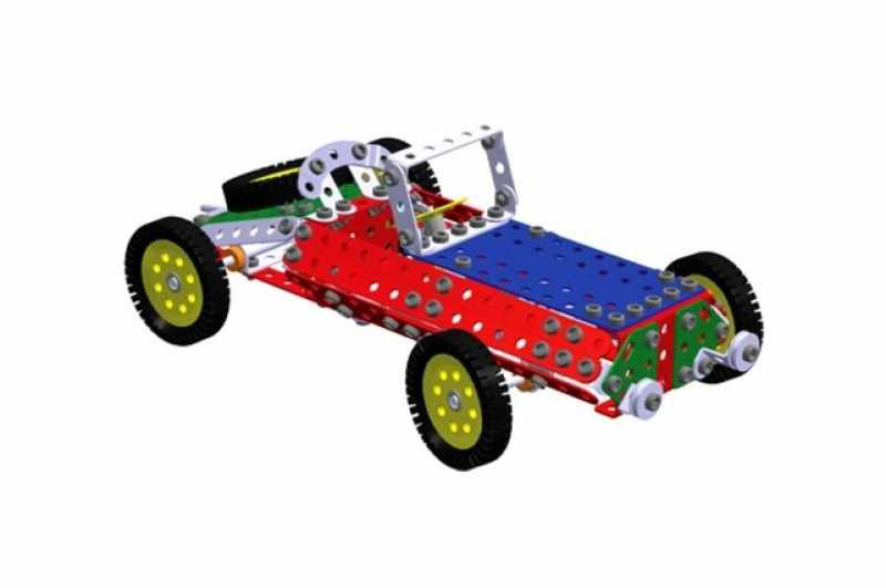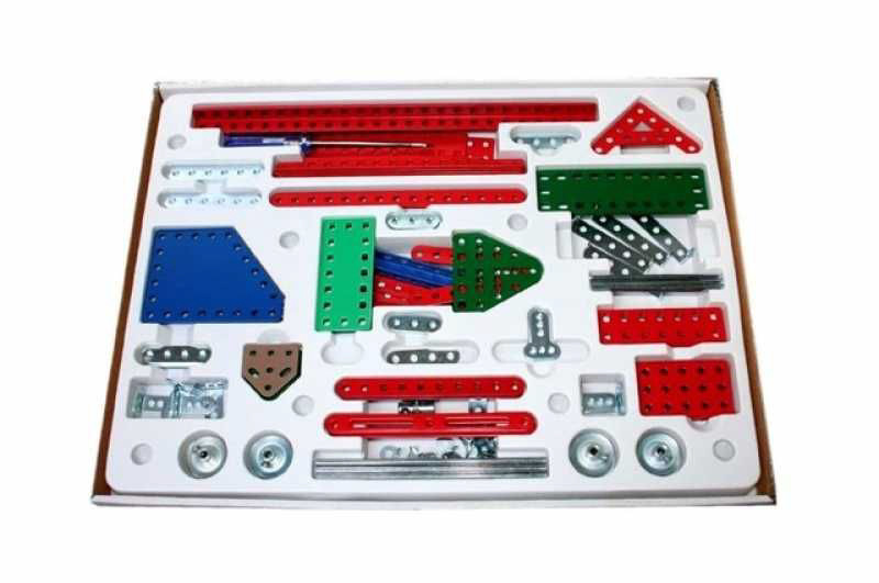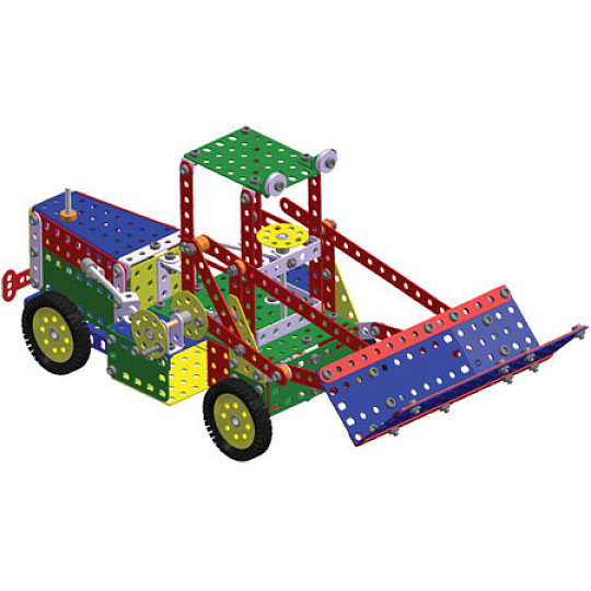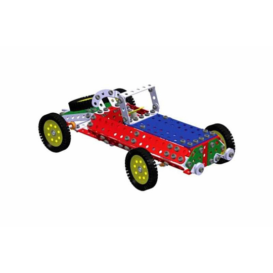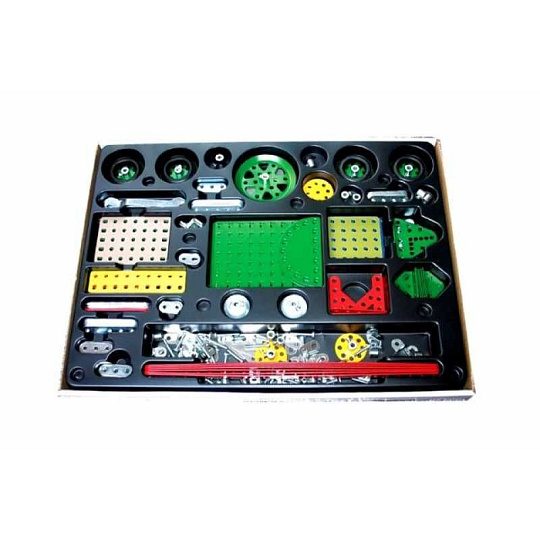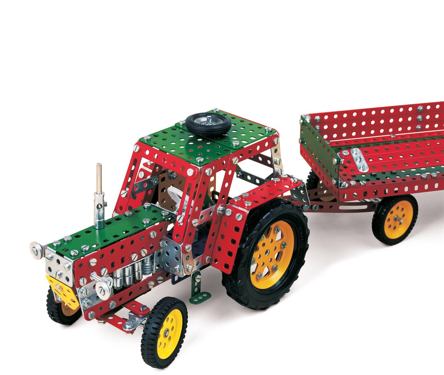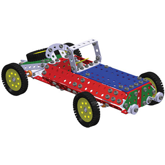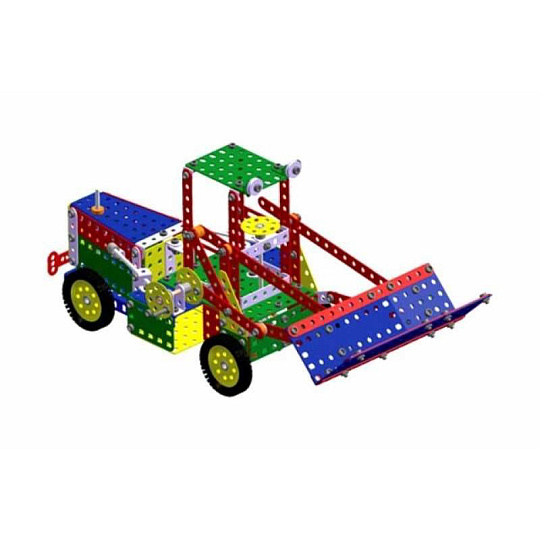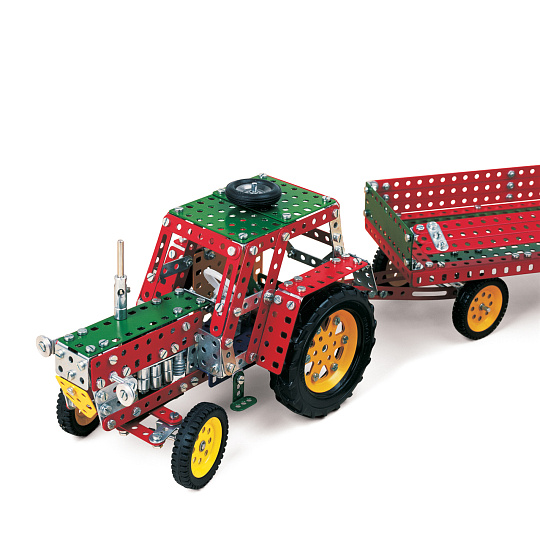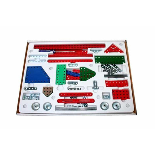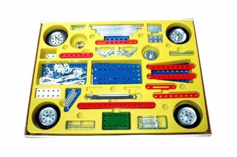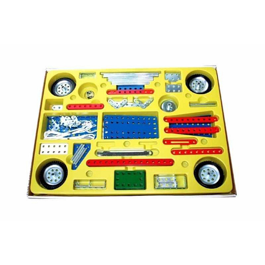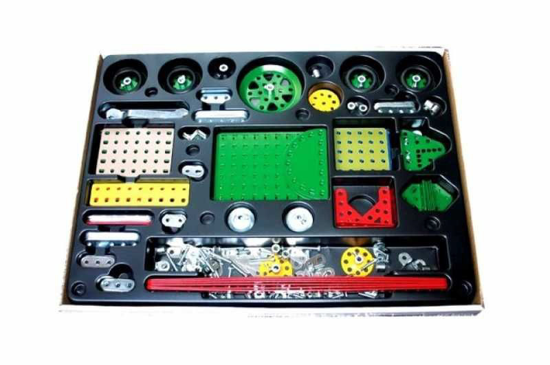 Univerzální jednovrstvá klasická stavebnice s návodem na stavbu 30 různých modelů. Obsahuje základní sestavu dílů jako jsou pásky, oblouky, plotničky, úhelníky, malá kola, pneumatiky, včetně šroubků a matiček. Součástí stavebnice je návodová knížka s návodem na stavbu 30 různých modelů jako je pásová pila, vagón, jeřáb, nákladní auto nebo výtah. Na začátku návodu jsou popsány a zobrazeny základní úkony jako spojování dílců, použití kontramatky, řešení lanových převodů, nebo uložení hřídelí v ložiscích. Stavebnice obsahuje kvalitní kovové díly, které se snadno spojují šroubky, což podporuje rozvoj jemné motoriky, logického myšlení a soustředění. Sada obsahuje: 273 dílků. Úroveň Merkur obtížnosti: 3. Baleno v krabičce. Rozměry balení: 27 x 36 x 5,8 cm. Nevhodné pro děti mladší 3 let. Věk: 5+
