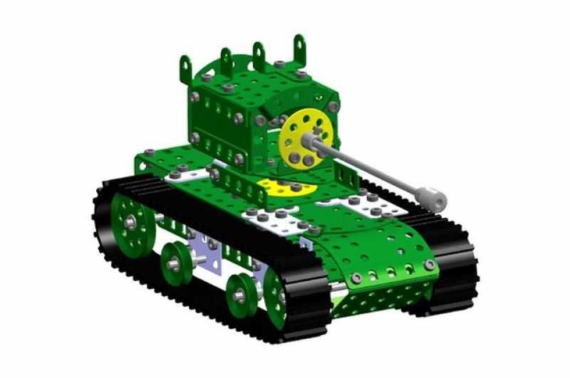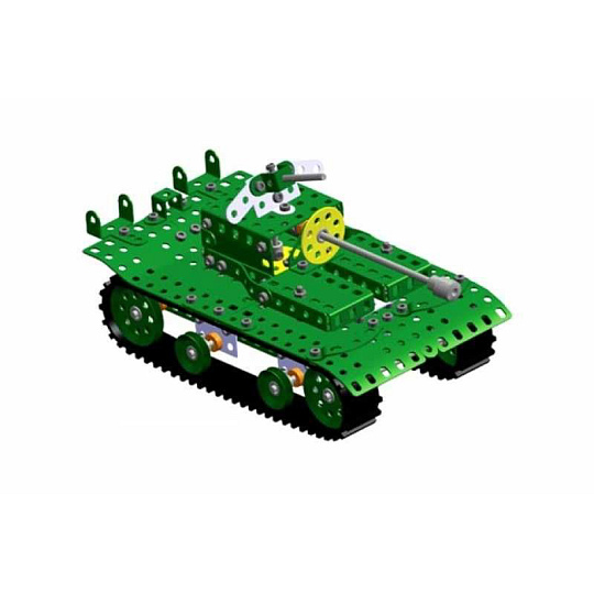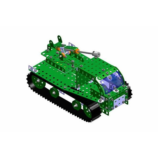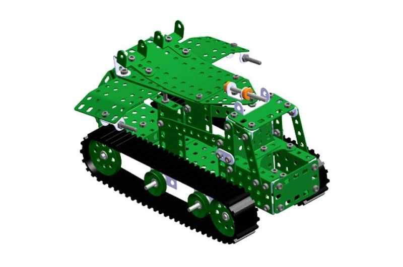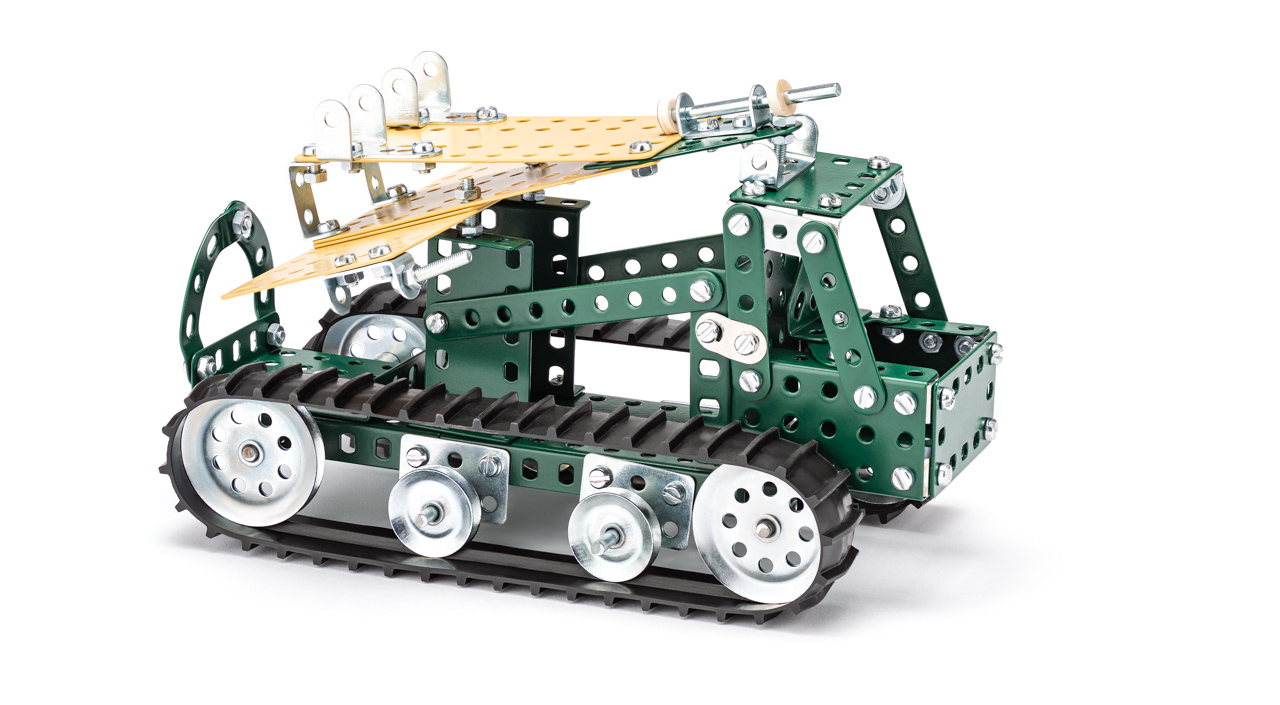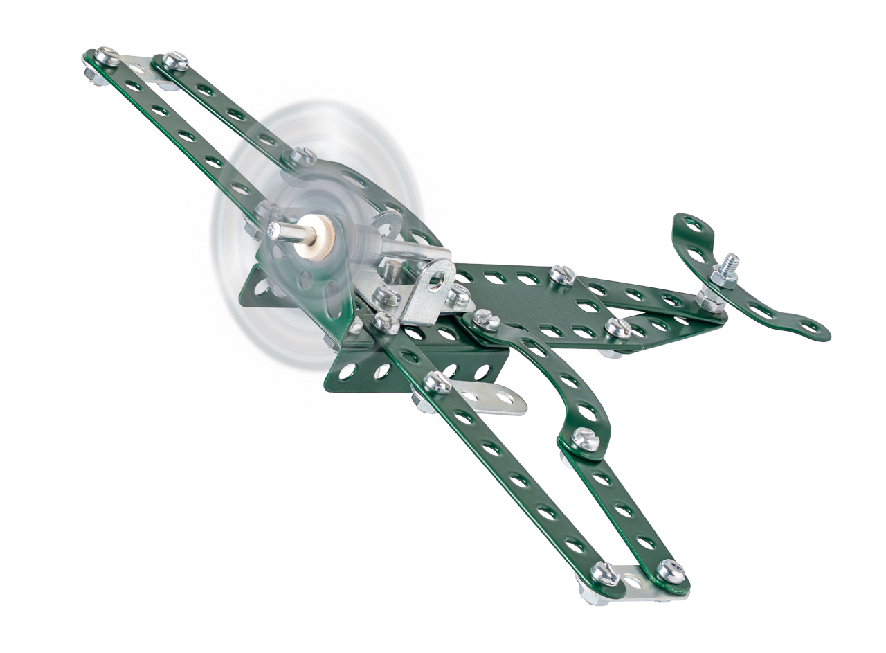 Univerzální jednovrstvá klasická stavebnice s návodem na stavbu 30 různých modelů. Obsahuje základní sestavu dílů jako jsou pásky, oblouky, plotničky, úhelníky, malá kola, pneumatiky, včetně šroubků a matiček. Součástí stavebnice je návodová knížka s návodem na stavbu 30 různých modelů jako je pásová pila, vagón, jeřáb, nákladní auto nebo výtah. Na začátku návodu jsou popsány a zobrazeny základní úkony jako spojování dílců, použití kontramatky, řešení lanových převodů, nebo uložení hřídelí v ložiscích. Stavebnice obsahuje kvalitní kovové díly, které se snadno spojují šroubky, což podporuje rozvoj jemné motoriky, logického myšlení a soustředění. Sada obsahuje: 273 dílků. Úroveň Merkur obtížnosti: 3. Baleno v krabičce. Rozměry balení: 27 x 36 x 5,8 cm. Nevhodné pro děti mladší 3 let. Věk: 5+