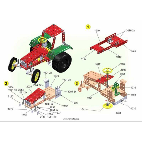 Startovací mini stavebnice Merkur, z které lze sestavit 1 model- traktor. Ideální pro trénink jemné motoriky a představivost. Vhodné i pro děti, které s Merkurem začínají, ale také pro sběratele. Se sestavenými modely si lze hrát, jsou velmi odolné. Stavebnice obsahuje 70 dílků.| Rozměr balení:5x9,5x4,5 cm | Věk: 5+| Rozměr modelu: 8,5x5,5x5 cm. Nevhodné pro děti mladší 3 let | Váha: 150 g