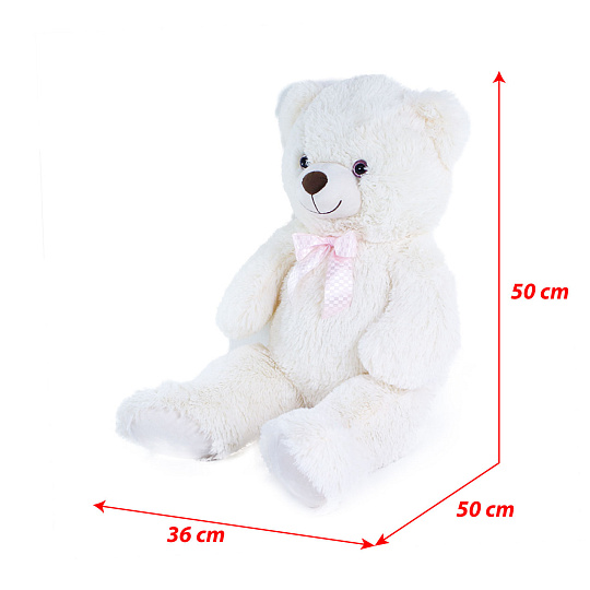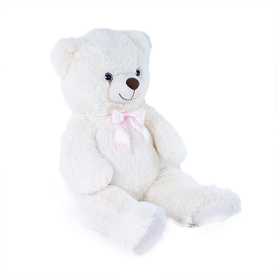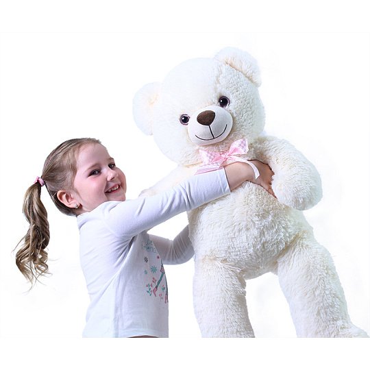 Plyšový medvěd nesmí chybět v žádném dětském pokojíčku! Medvěd ve velikosti 78 cm je vyroben z kvalitní heboučké plyše, má krémově bílou barvu a krk mu zdobí růžová saténová mašle. Tento plyšový kousek je ideálním dárkem pro malé i velké! Součástí je papírová visačka ve tvaru srdíčka, na kterou můžete napsat věnování. Vhodné pro děti od 0 let.
