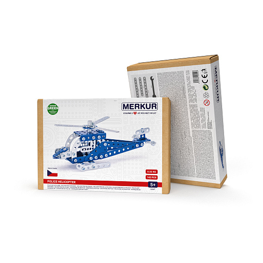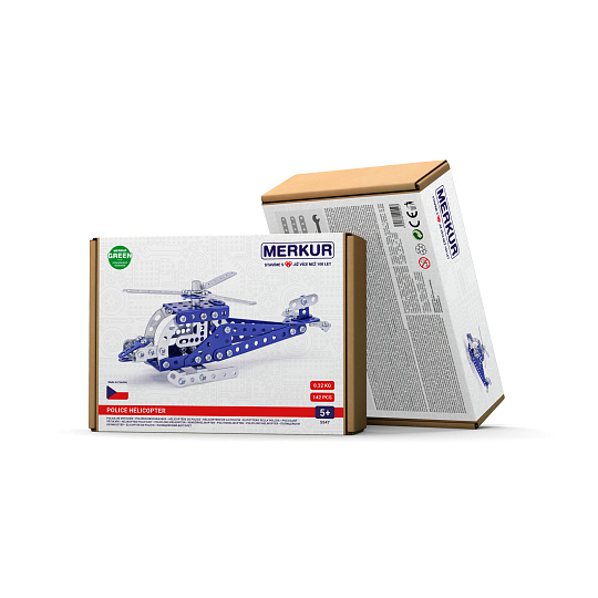Klasická jednovrstvá stavebnice Merkur 13 – vrtulník. Stavebnice obsahuje součástky potřebné pro stavbu modelů letecké techniky. Součástí stavebnice je návodová knížka s návodem na stavbu 10 různých modelů. Tato jedinečná sada je ideálním nástrojem pro rozvoj technických dovedností a představivosti dětí. Stavebnice obsahuje kvalitní kovové díly, které se snadno spojují šroubky, což podporuje rozvoj jemné motoriky, logického myšlení a soustředění. Počet dílků: 222. Úroveň Merkur obtížnosti: 2. Barvy, velikost a vzhled výrobku se mohou lišit oproti uvedeným fotografiím. Baleno v krabičce. Rozměry balení: 18 x 26 x 5 cm. Nevhodné pro děti mladší 3 let. Věk: 5+