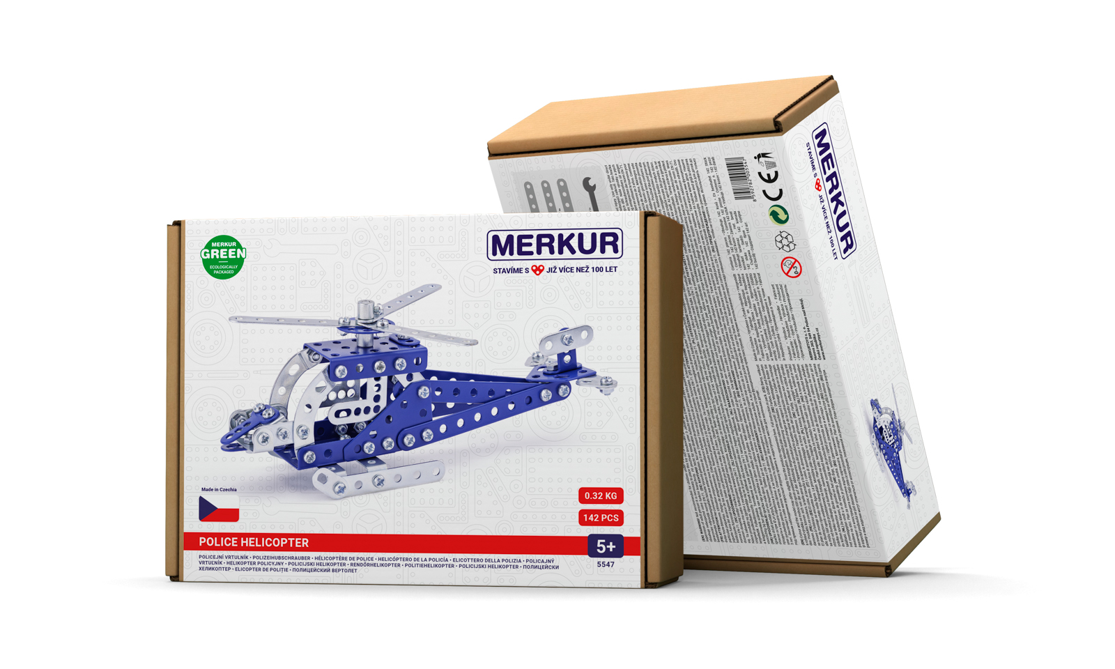 Dvouvrstvá klasická stavebnice Merkur 4 – velký set. Stavebnice obsahuje mimo základní sestavu dílů také součástky nutné pro stavbu nákladních automobilů, formulí a letadel. Součástí stavebnice je samozřejmě velká návodová knížka s návodem na stavbu 40 různých modelů jako je nákladní automobil, bugina, formule, jeřáb atd. Tato jedinečná sada je ideálním nástrojem pro rozvoj technických dovedností a představivosti dětí. Stavebnice obsahuje kvalitní kovové díly, které se snadno spojují šroubky, což podporuje rozvoj jemné motoriky, logického myšlení a soustředění. Počet dílků: 609. Úroveň Merkur obtížnosti: 3. Rozměry balení: 26,5 x 36 x 5,5 cm. Nevhodné pro děti mladší 3 let. Věk: 5+