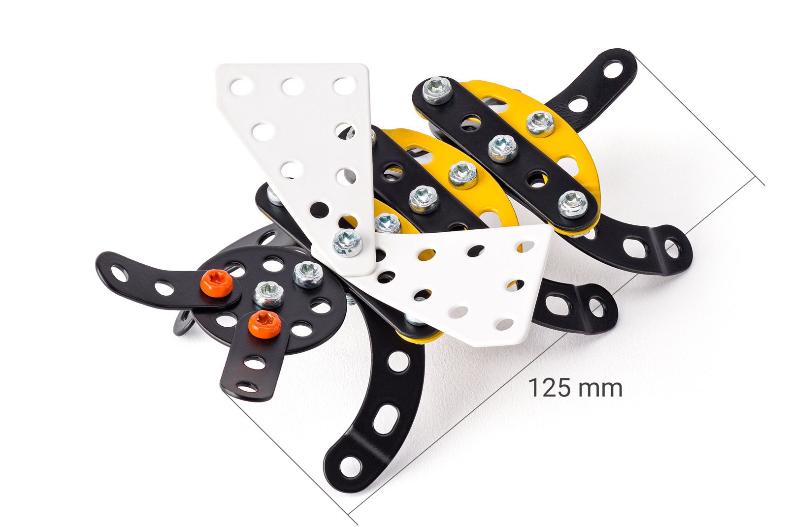 Kovový model Pavouka z kolekce hmyzáků obsahuje součástky nutné pro sestavení pavouka.V balení najdete podrobný návod, Merkur sadu nářadí a unikátní Merkur díly. Merkur díly jsou univerzální a tak vás neomezí v jakékoli modifikaci a nápadu. Stavebnici tak můžete sestavit podle přiloženého návodu nebo čistě podle svých představ. Se sestavenými modely si lze hrát, jsou velmi odolné. Podporuje a rozvíjí manuálních schopnosti, logické myšlení, soustředění. Rozměr balení: 18x13,5x5cm cm.Rozměr výrobku: 15x10x9cm cm. Počet dílků: 41. Nevhodné pro děti do tří let. Doporučený věk: 5+
