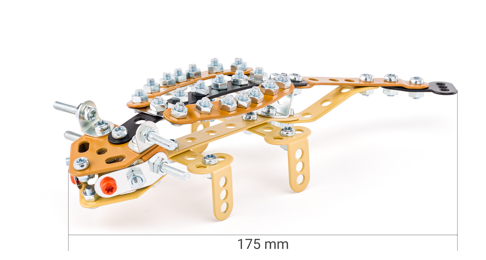 Kovový model Škorpiona z kolekce hmyzáků obsahuje součástky nutné pro sestavení škorpiona. V balení najdete podrobný návod, Merkur sadu nářadí a unikátní Merkur díly. Merkur díly jsou univerzální a tak vás neomezí v jakékoli modifikaci a nápadu. Stavebnici tak můžete sestavit podle přiloženého návodu nebo čistě podle svých představ. Se sestavenými modely si lze hrát, jsou velmi odolné. Podporuje a rozvíjí manuálních schopnosti, logické myšlení, soustředění. Rozměr balení: 18x13,5x5cm cm.Rozměr výrobku: 15x10x9cm cm.Počet dílků:93. Nevhodné pro děti do tří let. Doporučený věk: 5+