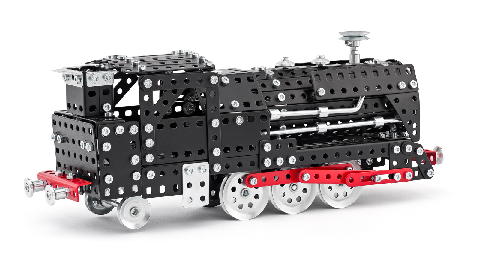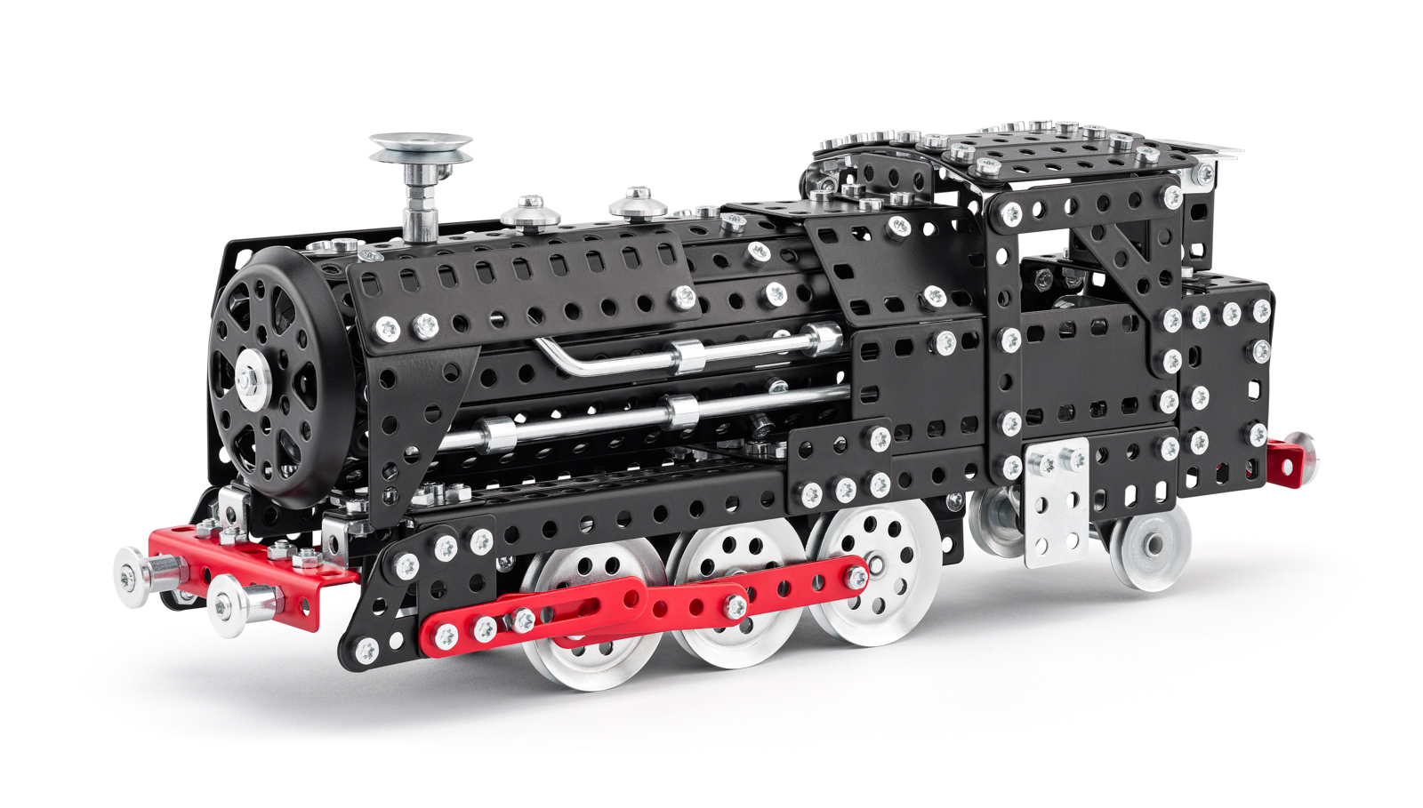 Univerzální jednovrstvá klasická stavebnice s návodem na stavbu 30 různých modelů. Obsahuje základní sestavu dílů jako jsou pásky, oblouky, plotničky, úhelníky, malá kola, pneumatiky, včetně šroubků a matiček. Součástí stavebnice je návodová knížka s návodem na stavbu 30 různých modelů jako je pásová pila, vagón, jeřáb, nákladní auto nebo výtah. Na začátku návodu jsou popsány a zobrazeny základní úkony jako spojování dílců, použití kontramatky, řešení lanových převodů, nebo uložení hřídelí v ložiscích. Stavebnice obsahuje kvalitní kovové díly, které se snadno spojují šroubky, což podporuje rozvoj jemné motoriky, logického myšlení a soustředění. Sada obsahuje: 273 dílků. Úroveň Merkur obtížnosti: 3. Baleno v krabičce. Rozměry balení: 27 x 36 x 5,8 cm. Nevhodné pro děti mladší 3 let. Věk: 5+