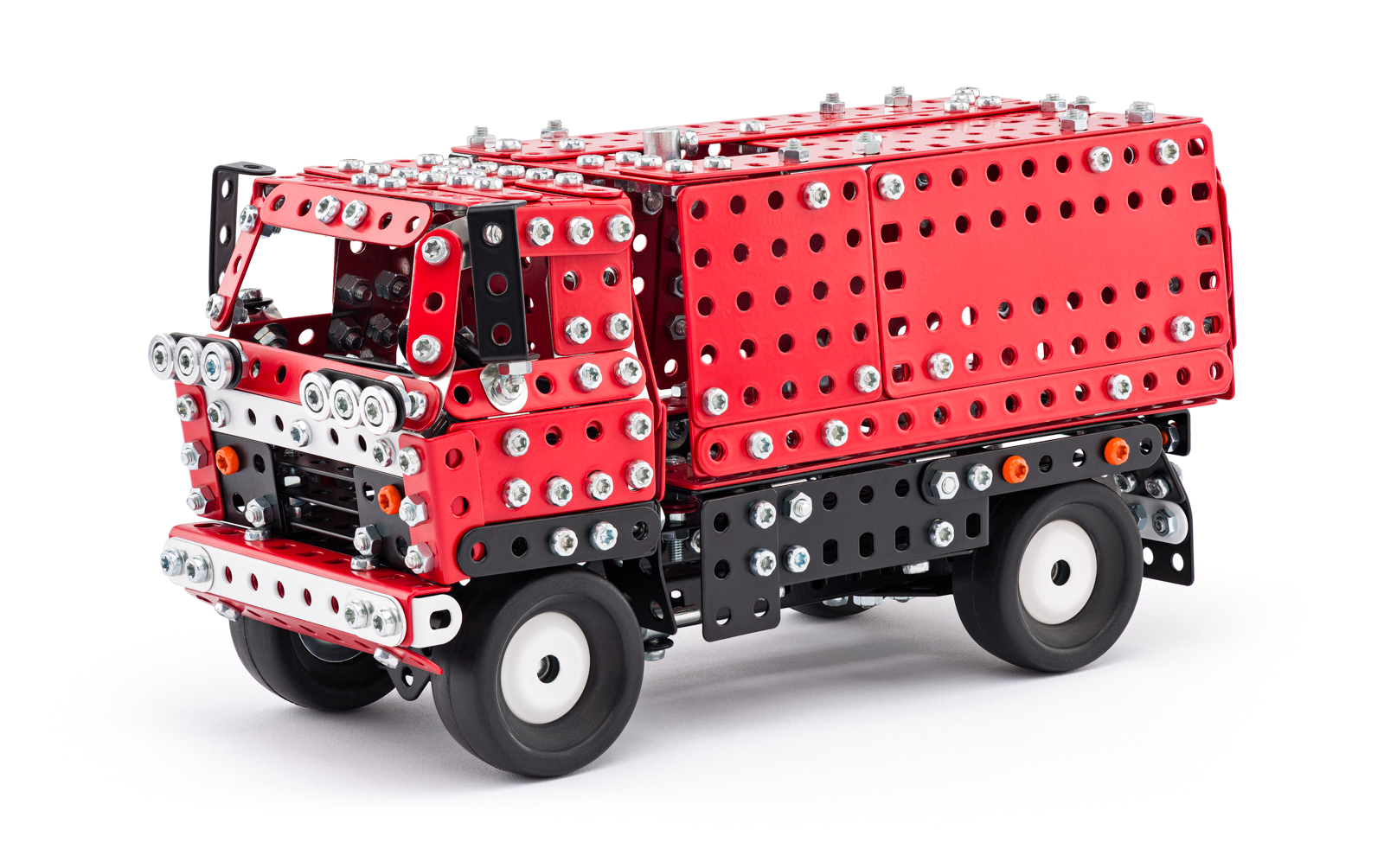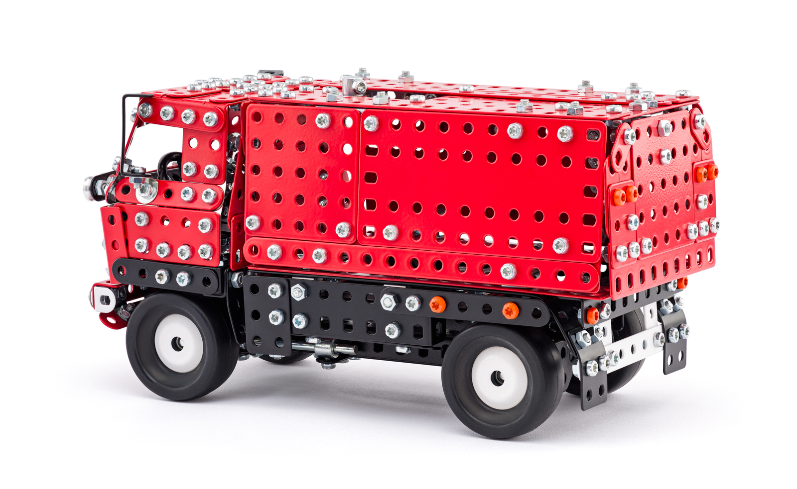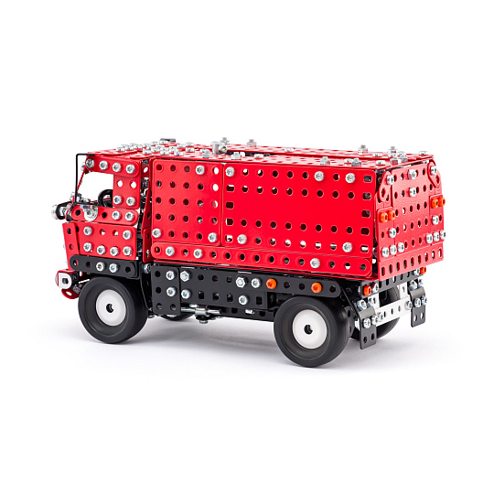 Univerzální jednovrstvá klasická stavebnice s návodem na stavbu 30 různých modelů. Obsahuje základní sestavu dílů jako jsou pásky, oblouky, plotničky, úhelníky, malá kola, pneumatiky, včetně šroubků a matiček. Součástí stavebnice je návodová knížka s návodem na stavbu 30 různých modelů jako je pásová pila, vagón, jeřáb, nákladní auto nebo výtah. Na začátku návodu jsou popsány a zobrazeny základní úkony jako spojování dílců, použití kontramatky, řešení lanových převodů, nebo uložení hřídelí v ložiscích. Stavebnice obsahuje kvalitní kovové díly, které se snadno spojují šroubky, což podporuje rozvoj jemné motoriky, logického myšlení a soustředění. Sada obsahuje: 273 dílků. Úroveň Merkur obtížnosti: 3. Baleno v krabičce. Rozměry balení: 27 x 36 x 5,8 cm. Nevhodné pro děti mladší 3 let. Věk: 5+