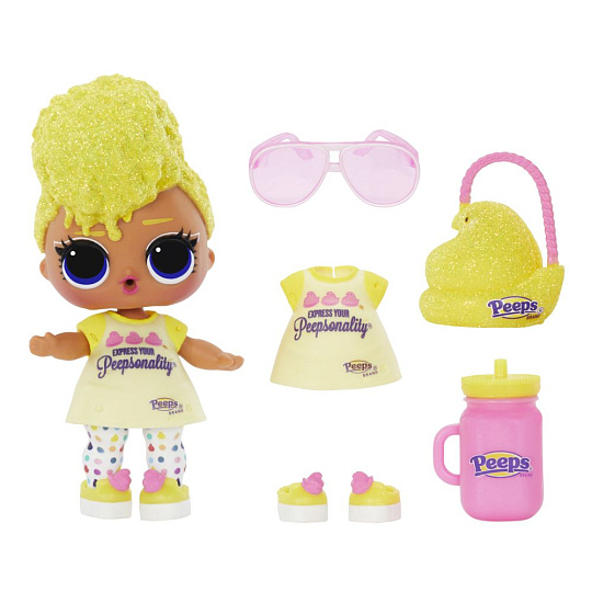 Představujeme limitovanou edici L.O.L. Surprise! Loves Mini Sweets - Peeps! L.O.L. Surprise! se spojilo se značkou cukrovinek Peeps, aby vám přineslo nejdivočejší jaro všech dob. Každá panenka má jedinečný styl se třpytivými detaily, které ladí s oblíbenými cukrovinkami Peeps! Rozbal 7 překvapení a jednu ze dvou panenek Tough Chick nebo Cute Bunny. Když dáš panence napít z lah-vičky, bude plivat vodu.