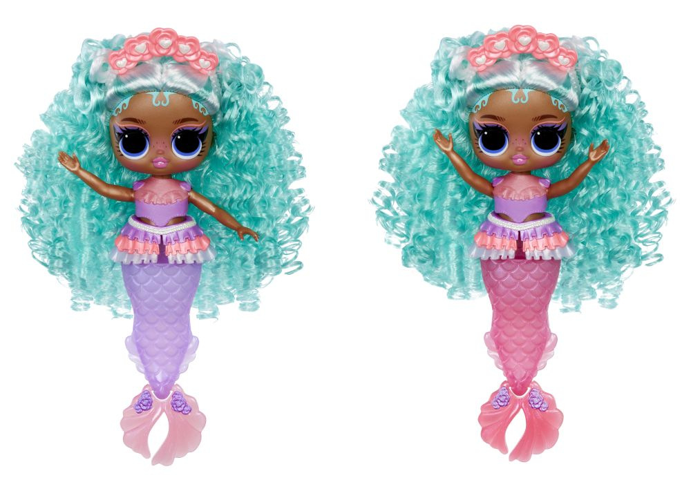Představujeme 4 nové L.O.L. Surprise! Tweens rošťácké panenky, které se přeměnily na mořské panny s nádherně barevnou ploutví, která mění barvu, když ji ponoříš do ledové vody. Panenka dokáže na ploutvi stát. V balení najdeš spoustu tematických doplňků.