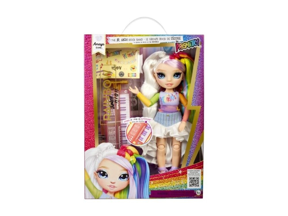 Každá panenka z této série představuje talentovanou členku hudební kapely, která už v mladém věku září na pódiu. Amaya, vysoká přibližně 23 cm, vás oslní svým duhovým vzhledem a klávesami, na které s nadšením hraje. S pohyblivými klouby ji snadno nastavíte do různých pozic, aby se mohla předvést během epického koncertu. Díky veselým nálepkám je možné panenku personalizovat a dotvořit její jedinečný styl dle vaší fantazie.