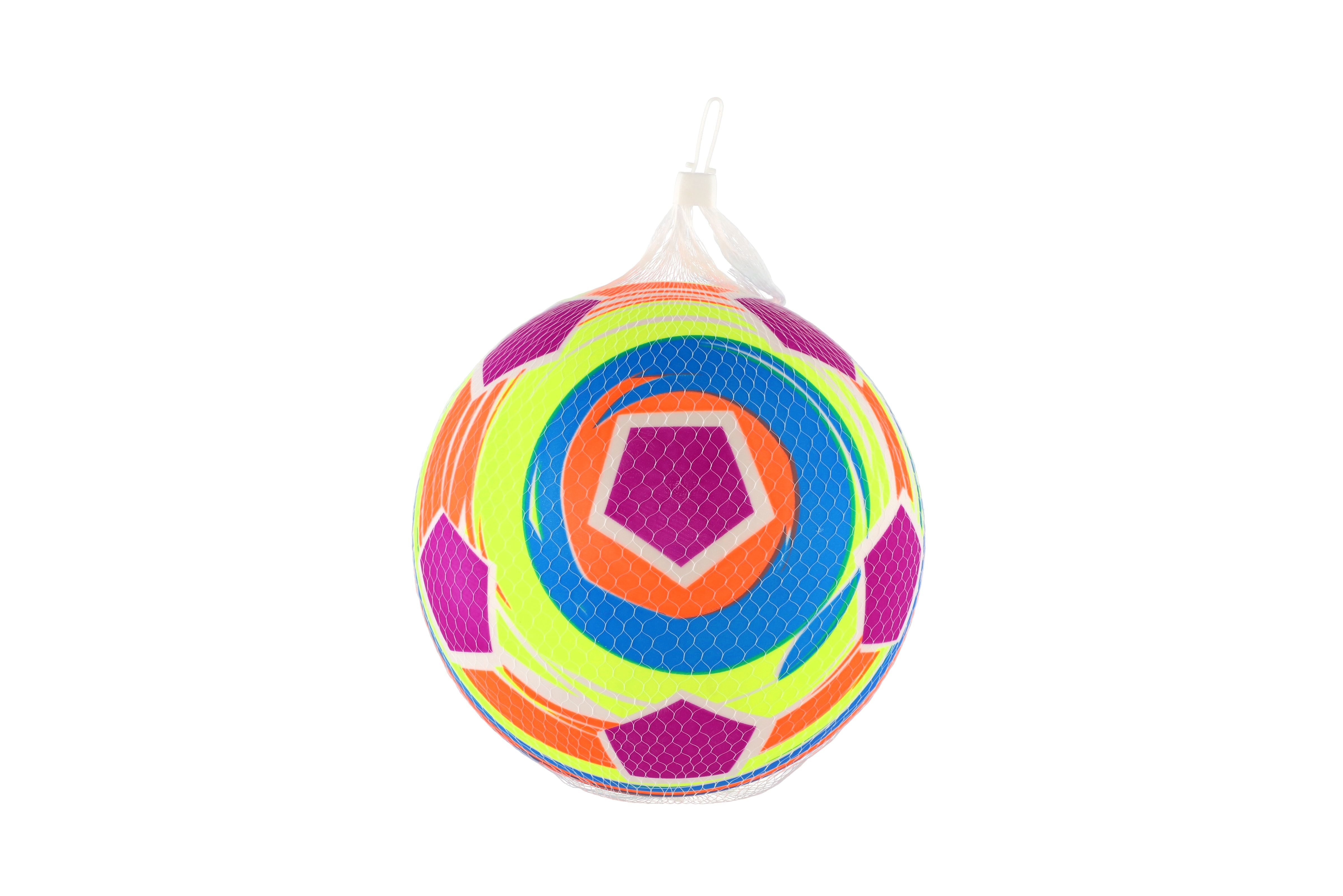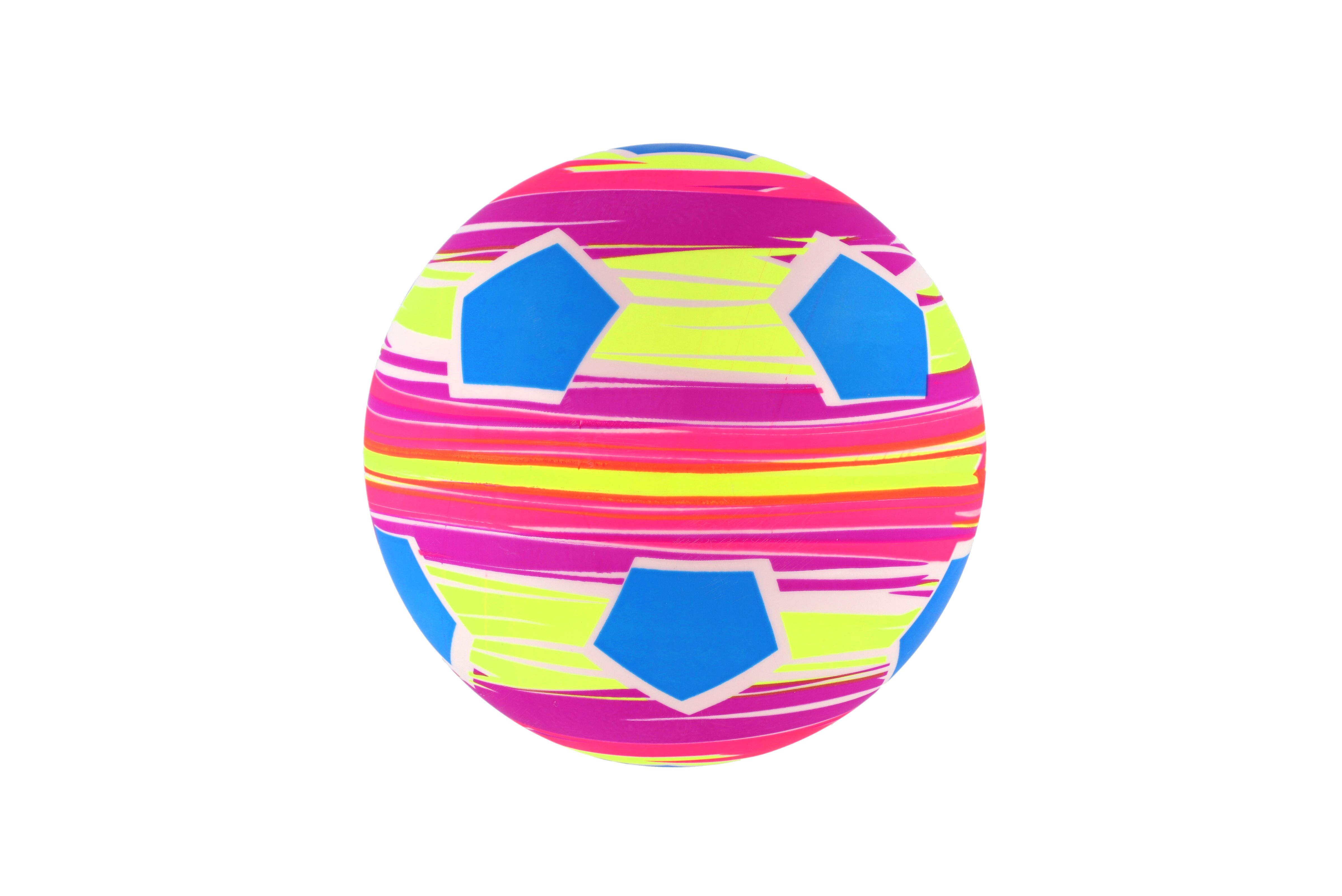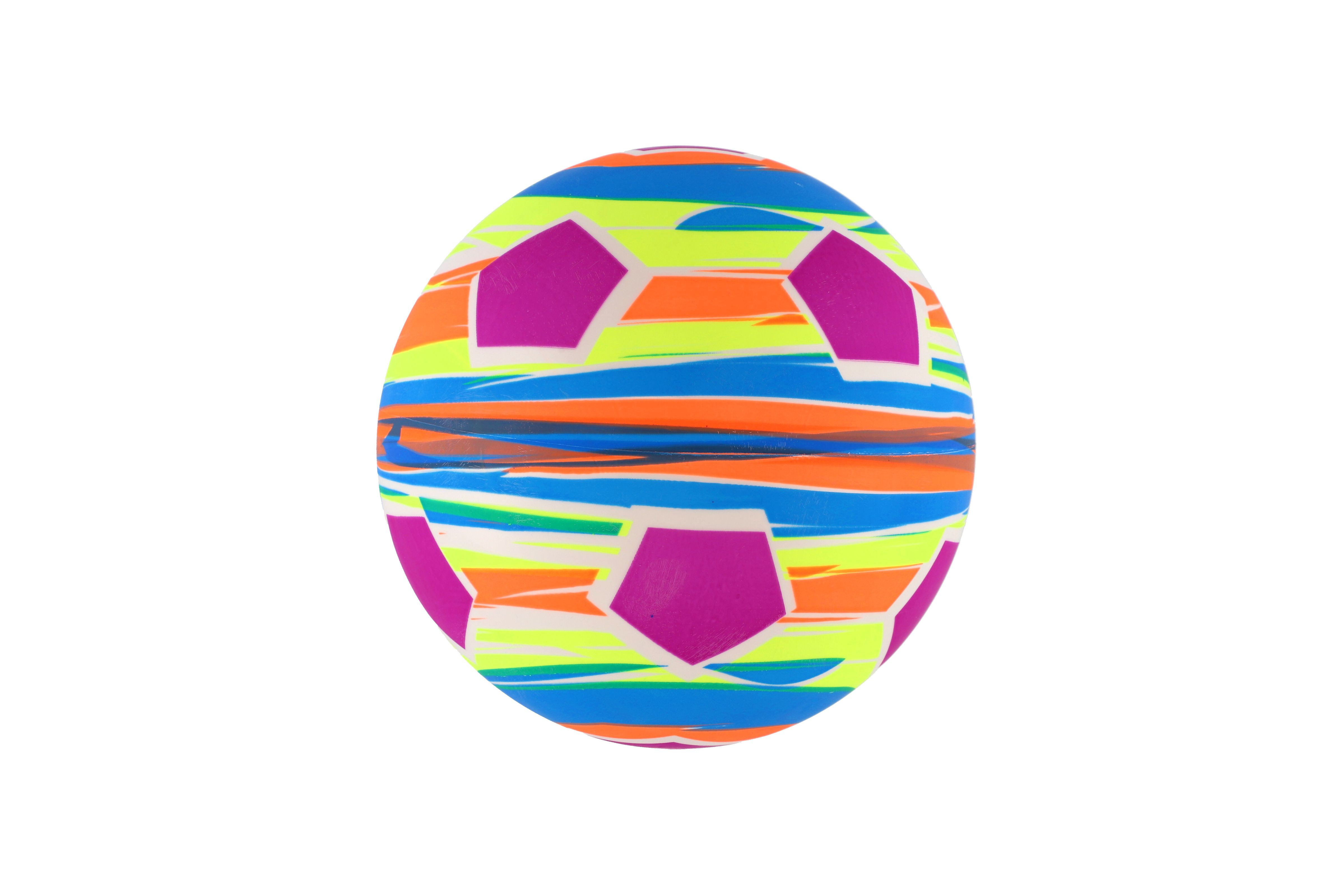 Míč s barevným potiskem. Míč je vyroben z voděodolného materiálu a je vhodný nejen na kopání či házení na zahradě nebo na hřišti, ale lze jej použít také v bazénu. Můžete s nimi dovádět celé hodiny. Průměr míče: 22 cm Vhodné od 3 let