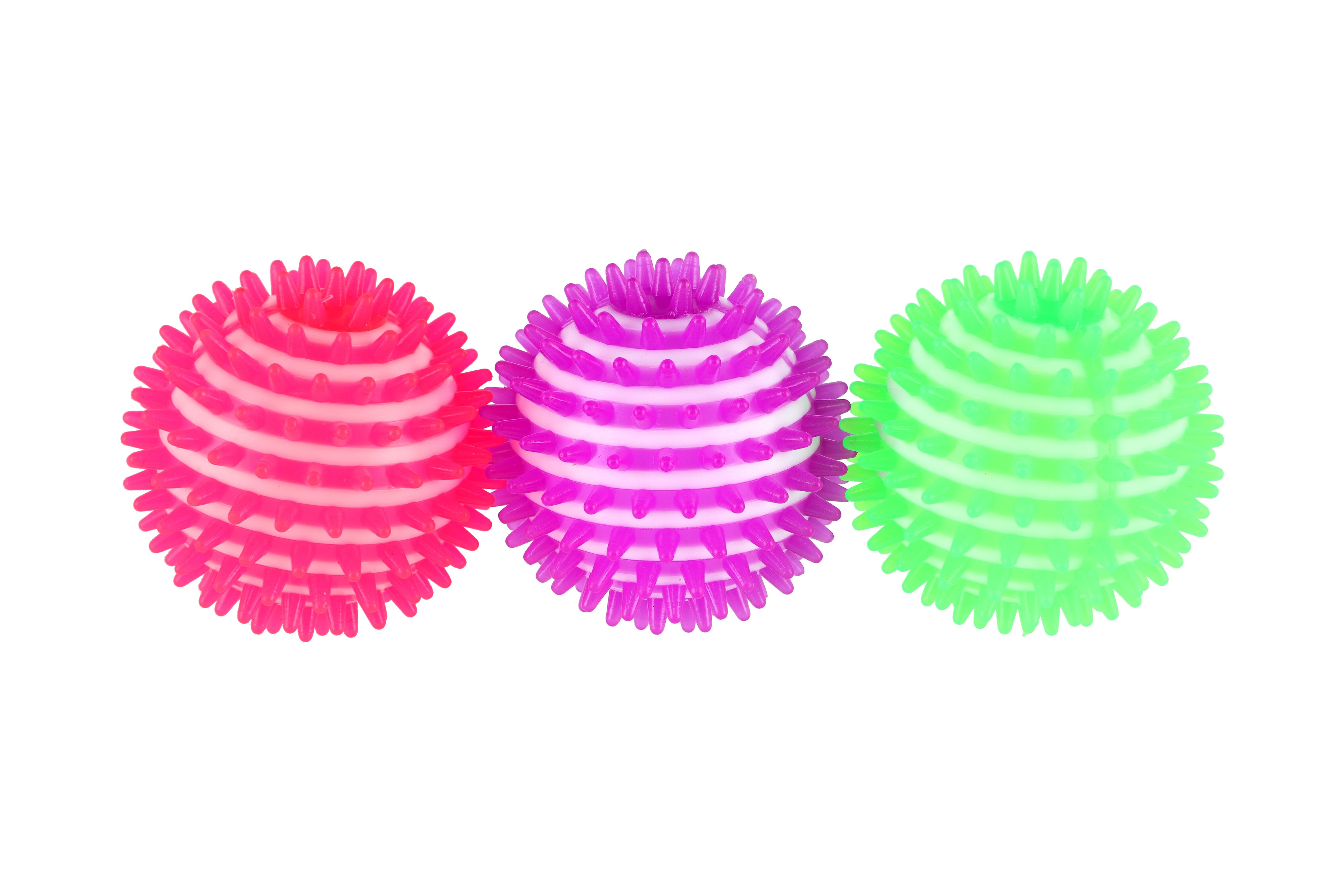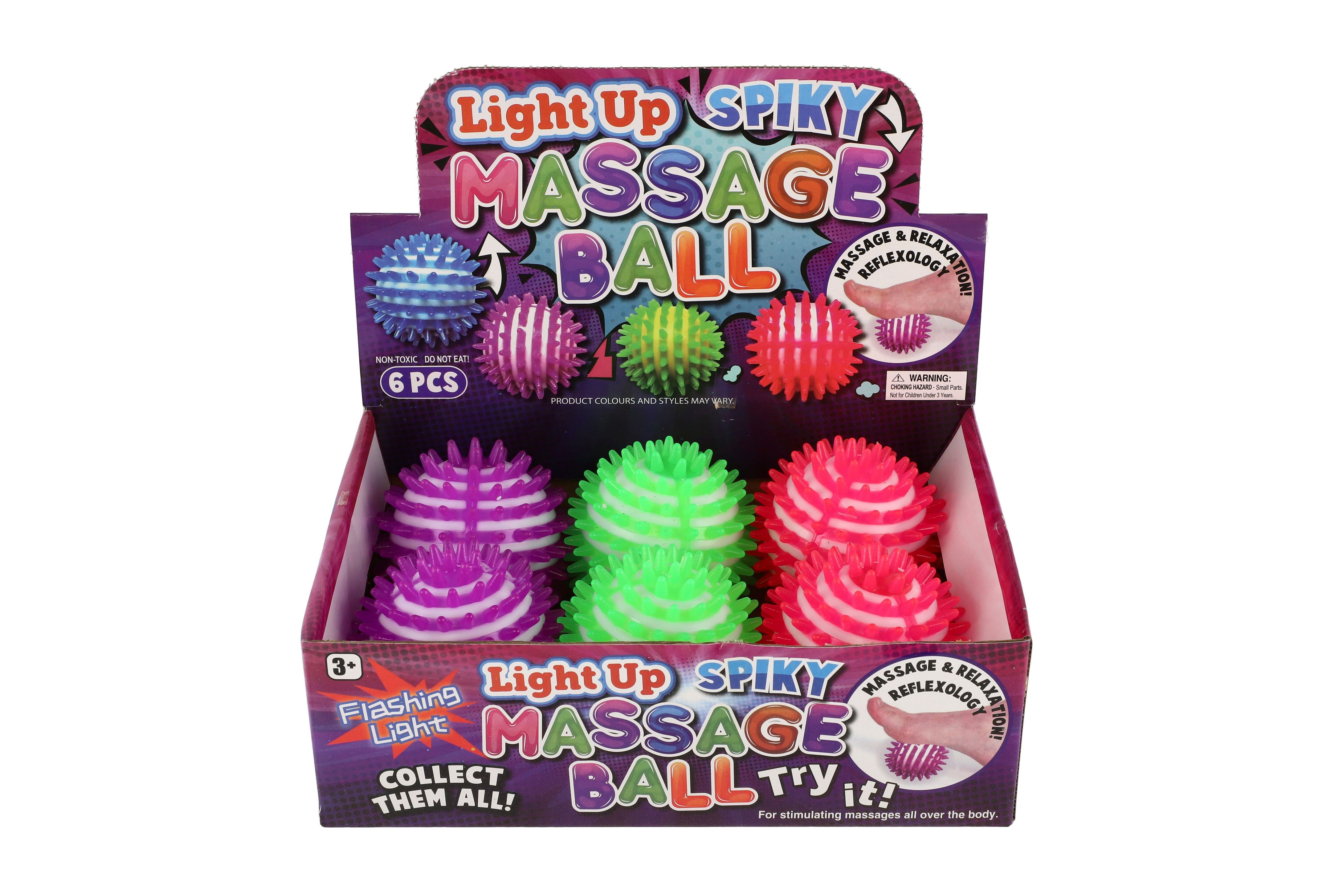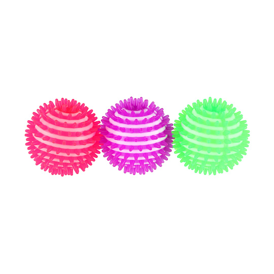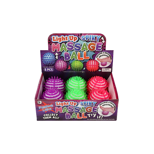 Míčky jsou skvělou pomůckou při rehabilitaci a nebo masáži pro uvolění namožených či zablokovaných svalů a také může fungovat jako antistresový. Díky masáži míčkem s bodlinkami se snáze zbavíte nadměrného pnutí chodidel, šíje a nebo bolavých svalů. Míček je gumový, se světlem. Velikost míčku: 8 cm